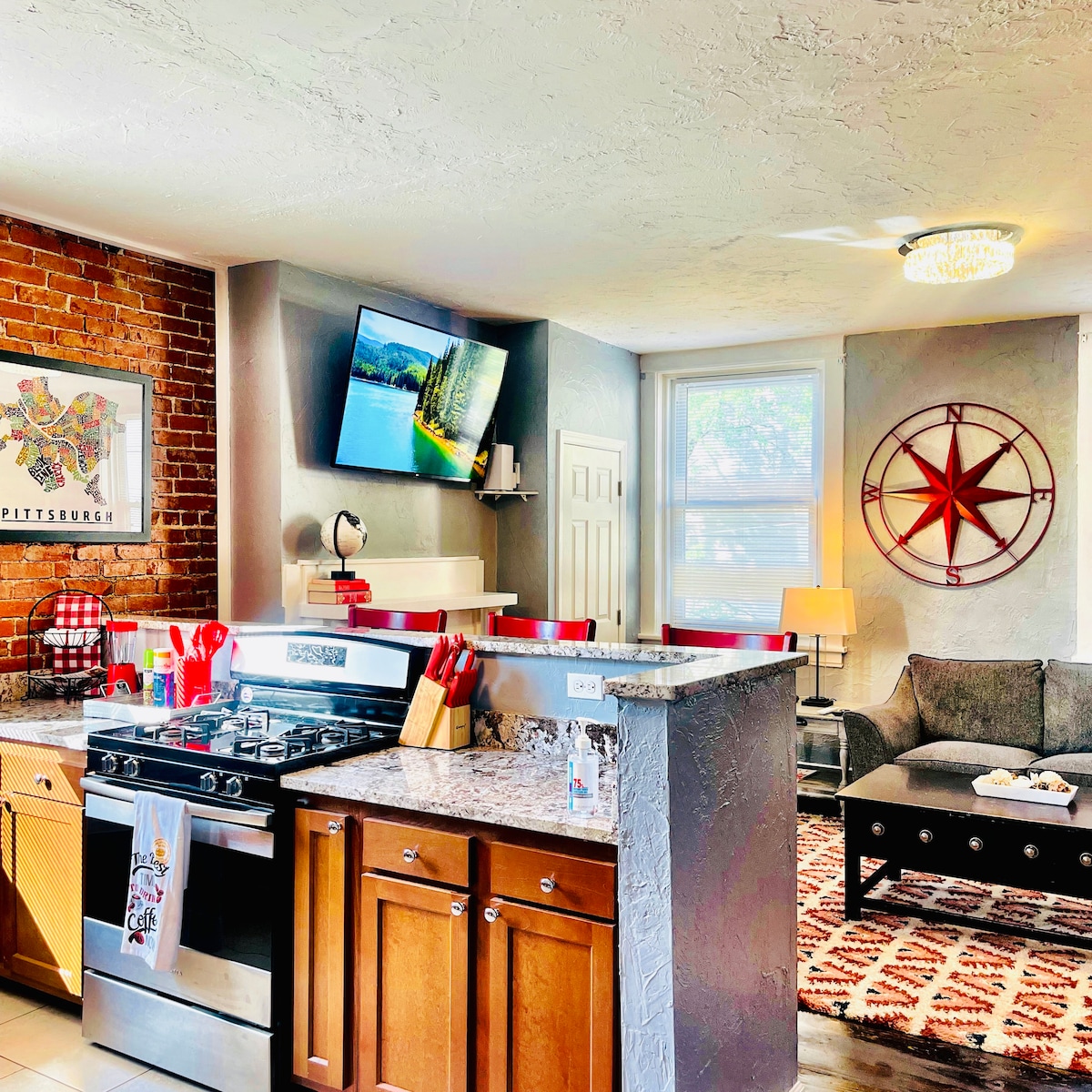 Jedna z niewielu umeblowanych kwater na Grandview Ave, słynnej drodze z widokami za milion dolarów w Pittsburghu! Całkowicie przebudowane na wynajem krótkoterminowy, nasze miejsce emanuje urokiem Pittsburgha. Pracuj w domu ze spektakularnym widokiem na miasto ze swojego biurka w stylu vintage, zrelaksuj się na kanapie i oglądaj telewizor 60" lub po prostu spędzaj czas na łóżku typu king size! Jesteśmy zaledwie przecznicę od Shiloh St., z ponad 10 barami i restauracjami, ale zawsze możesz gotować w naszej w pełni zaopatrzonej kuchni!