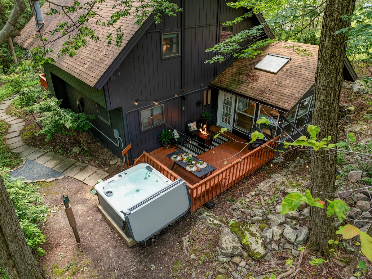Skylight Chalet: prywatny wypoczynek w samym sercu gór Pocono. Położony na prawie akrze bujnego lasu i głazów, nasz ośrodek wypoczynkowy oferuje idealną równowagę między komfortem, przytulnością i relaksem. Zrelaksuj się w jacuzzi pod gwiazdami, odśwież się w saunie lub zbierz się wokół paleniska na przytulne wieczory z przyjaciółmi i rodziną. Niezależnie od tego, czy szukasz przygody, czy spokojnego relaksu, nasza chatka zapewnia spokojne sanktuarium na Twój wyjazd. 📅 Zarezerwuj już dziś i zabezpiecz swój wypad do Pocono!