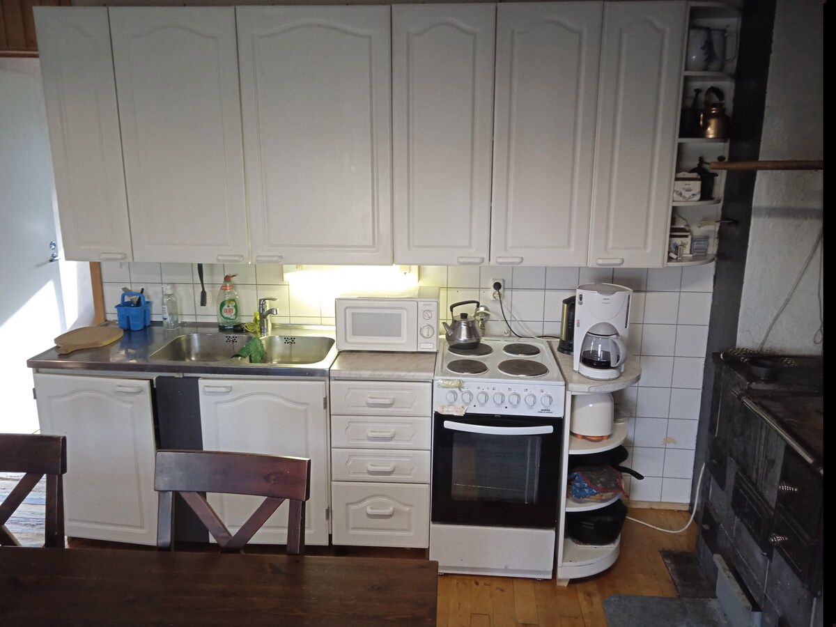 100-letnia chatka z bali z udogodnieniami na podwórku głównego domu. Dla gości wielodniowych w sezonie grzewczym, oprócz elektryczności, ogrzewania pieca. Drzewa gotowe, wskazówki lub ogrzewanie w razie potrzeby. Dobre połączenia drogowe. Około 10 minut do Outokumpu i 30 minut do Joensuu. Koli około godziny i klasztor Valamo około 30 minut jazdy samochodem. Na zewnątrz jest też klatka dla psów z małym kurnikiem.