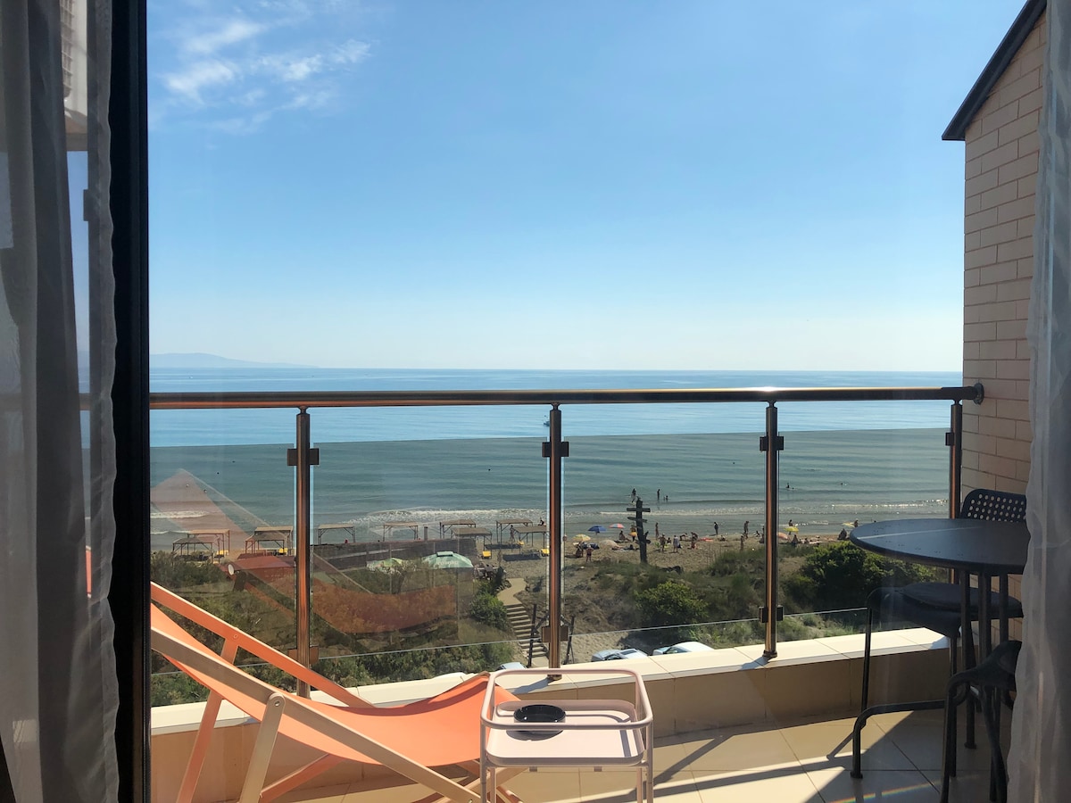 Pierwsza linia – zaledwie minutę od plaży. Wspaniały widok. Apartament posiada w pełni wyposażoną kuchnię, jedną sypialnię z podwójnym łóżkiem, telewizor z płaskim ekranem i kanałami satelitowymi, przestronny salon z rozkładaną sofą do spania, taras z pięknym widokiem na morze. Apartament znajduje się w nowym budynku, atmosfera jest dość przyjemna.
