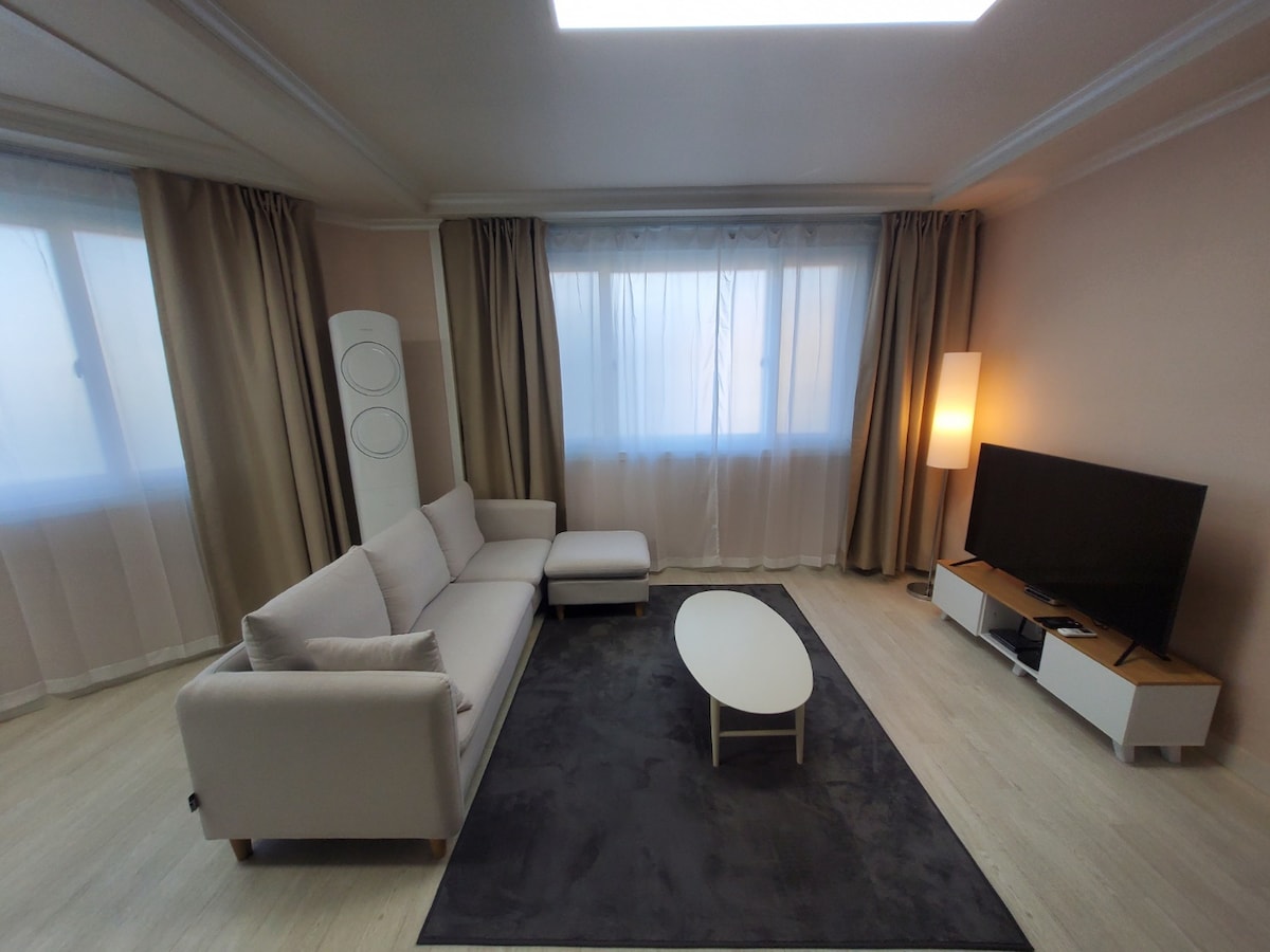 Przedstawiamy 💕nowo odnowiony „Mind 1. Jest to nowo odnowiony dom, w którym każde oświetlenie, meble i wyposażenie zostały starannie przemyślane, aby zapewnić doskonały wypoczynek gościom, którzy przyjeżdżają do naszego domu. 10 minut spacerem od stacji Gangneung, 15 sekund od restauracji Eumjine pojazdów dostawczych, 30 sekund od sklepu spożywczego, bardzo blisko i na pierwszym piętrze domu jednorodzinnego. ▪︎ Maksymalna liczba osób: 3 (w przypadku dodatkowych osób prosimy o kontakt) ▪︎ Parking: Bezpłatny parking na podwórku ▪︎ Struktura: 2 pokoje (1 łóżko w każdym), kuchnia, salon, toaleta Ze względu na hałas, maksymalna liczba osób to 3, ale jeśli jesteście rodziną lub możecie uważać na hałas w późnych godzinach, to możliwe jest zakwaterowanie 4 osób. Przed dokonaniem rezerwacji prosimy o wcześniejszy kontakt. W obiekcie obowiązuje zakaz palenia. Nie można rezerwować obiektu na spotkania towarzyskie, które mogą być hałaśliwe po godzinie 21:00. Przed dokonaniem rezerwacji „koniecznie” przeczytaj regulamin domu.