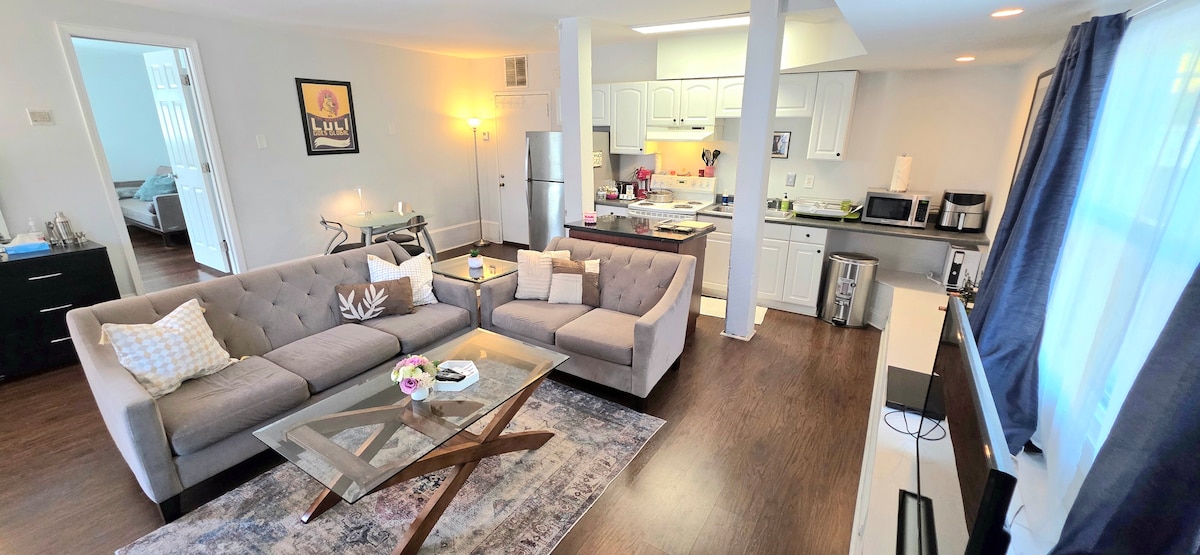 Witamy w naszym nowo odnowionym i profesjonalnie zaprojektowanym apartamencie w piwnicy, położonym w zabytkowej dzielnicy Old Fourth Ward w Atlancie. Ten luksusowy i komfortowy dom jest idealnym miejscem na pobyt dla gości, którzy chcą doświadczyć tętniącej życiem kultury miasta i tętniącego życiem życia nocnego. Zaledwie kilka kroków lub przejażdżka rowerem dzieli Cię od najlepszych restauracji, sklepów i rozrywki, w tym Ponce City Market i zawsze tętniącego życiem Atlanta Beltline Eastside Trail.