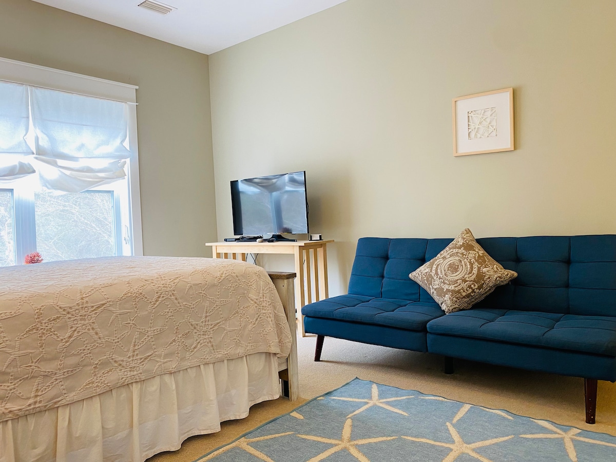 ***Beach service at our private beach for 2 included**** A beautifully decorated studio condo that sleeps 4 comfortably. It includes a queen size bed and queen size sleeper sofa with a memory foam mattress. Not to mention a breakfast bar and 55” TV with surround sound. You can stand on the back deck and see views of the sugary white sand beaches that are right across the street from our place. Beach service at our private beach for 2 included from March-October.