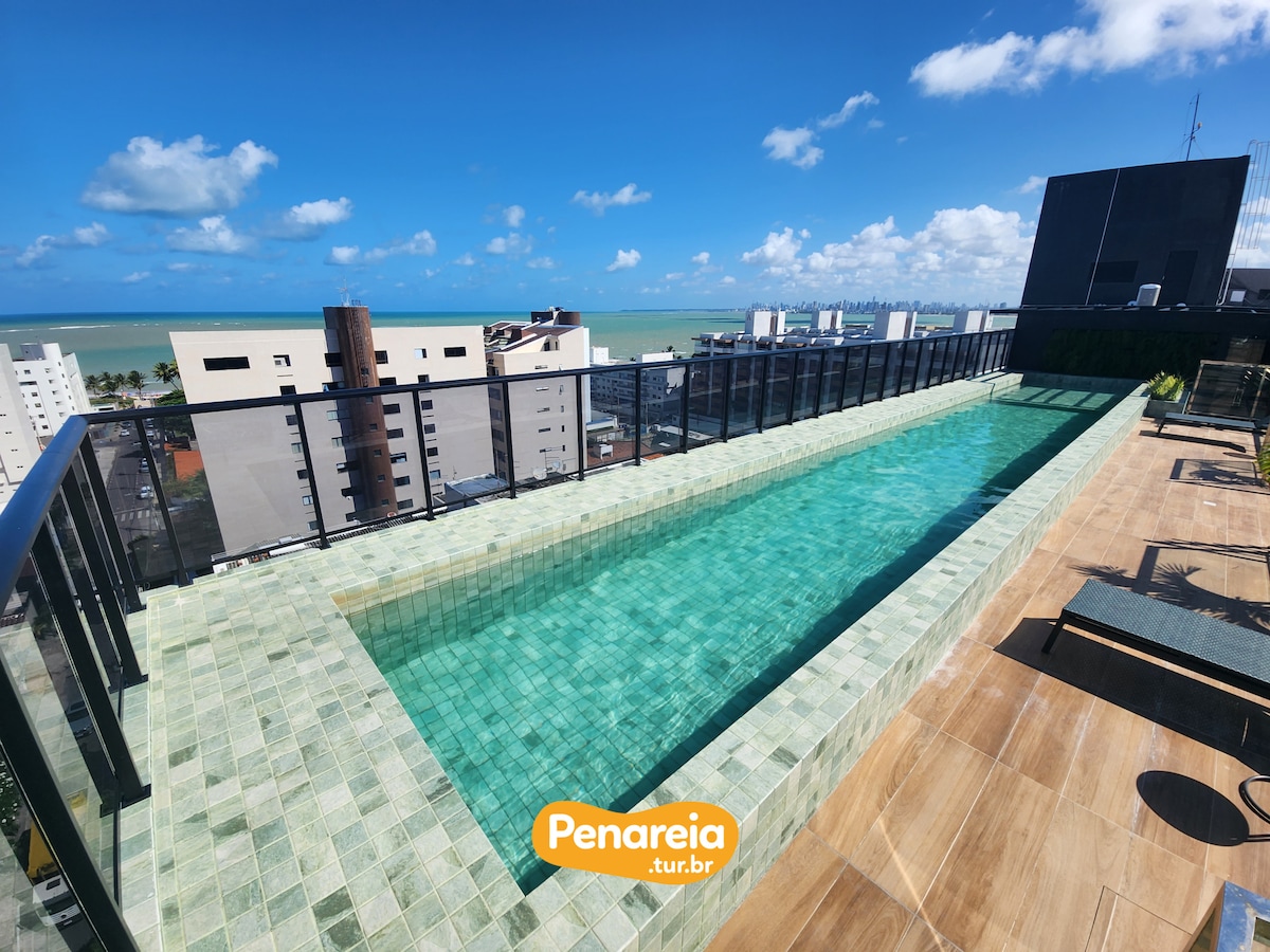 Zanurz się w wyrafinowanym i komfortowym pobycie zaledwie 350 m od morza! Ciesz się nowoczesnym otoczeniem, klimatyzowanym apartamentem i łóżkiem typu queen, dodatkowym pokojem z 2 łóżkami pojedynczymi i klimatyzacją. Salon z kanapą i telewizorem Smart TV, w pełni wyposażona kuchnia i balkon z widokiem na miasto. Wspólne obszary obejmują basen na dachu i grill. Strategiczna lokalizacja w Cabedelo oferuje łatwy dostęp do restauracji i rynków. Zarezerwuj swój ekskluzywny pobyt już teraz!