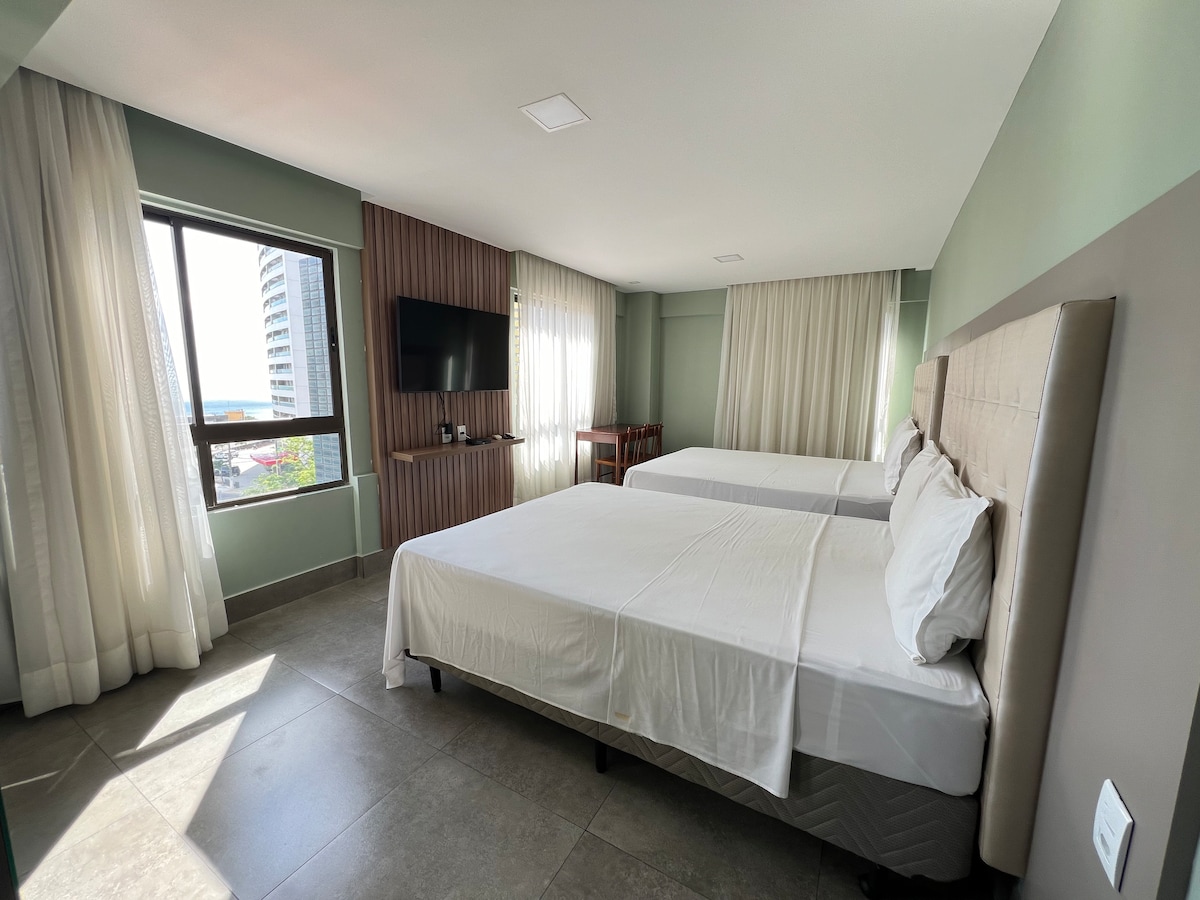 Zamieszkaj w 4-gwiazdkowym hotelu w cenie Airbnb! Apartament w Coral Plaza Apart Hotel, z *prywatnym* tarasem i spektakularnym widokiem na Morro do Careca. Idealne dla pary lub rodziny, zapraszamy do relaksu na super tarasie z leżakami i wspaniałą kąpielą, aby się odświeżyć. Hotel oferuje basen, restaurację, bar z napojami, salę gier, przestrzeń dla dzieci i *bezpośredni* dostęp do plaży. Dogodna lokalizacja, w pobliżu zabawy, całodobowego sklepu i najlepszej lokalnej gastronomii.