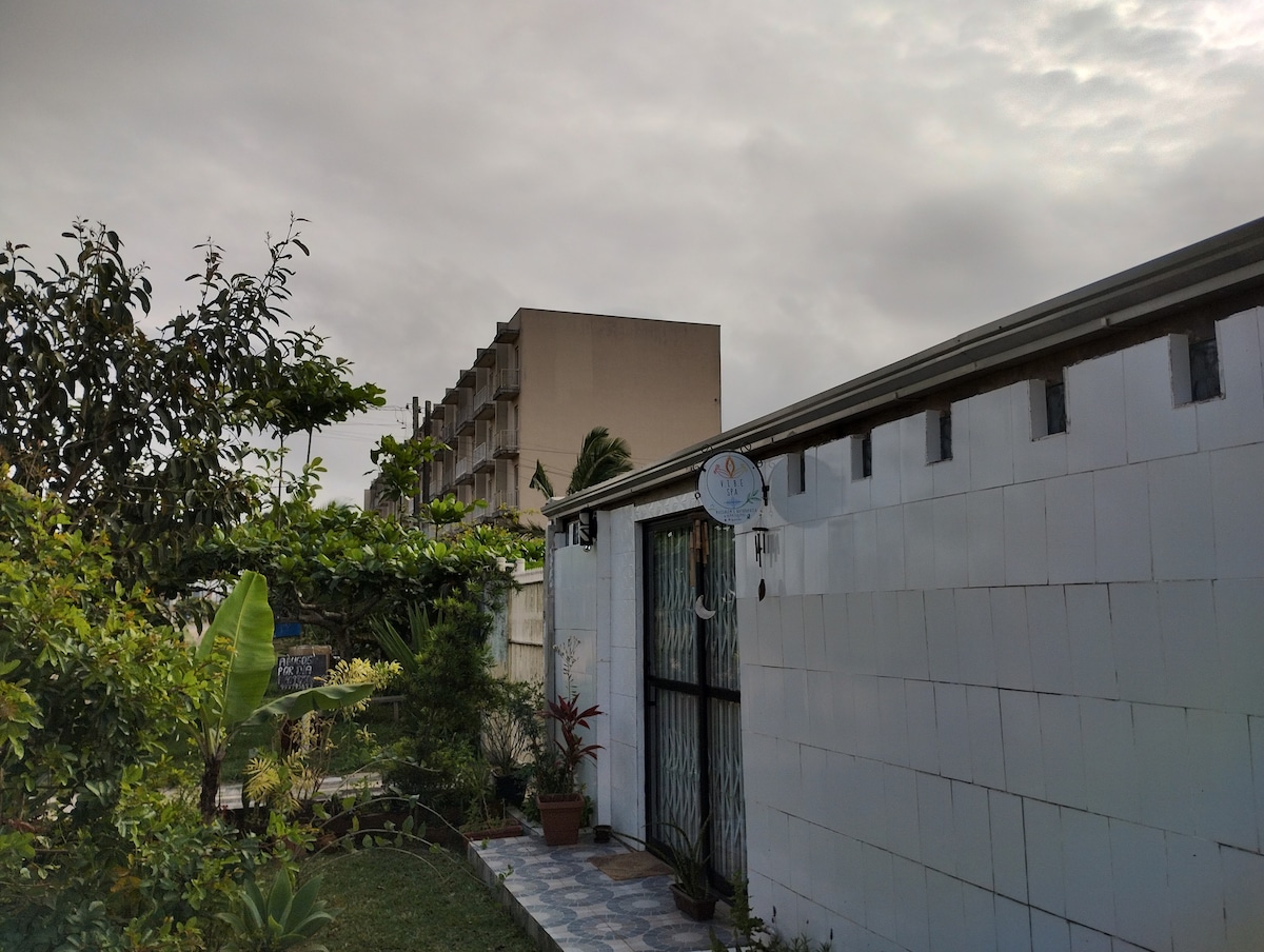 Idealne miejsce dla 2 osób, zawierające: sypialnię z podwójnym łóżkiem, szafki, klimatyzację; salon/spiżarnię z wygodną sofą, telewizorem, stołem i kredensem; kuchnię z lodówką, kuchenką gazową z piekarnikiem, zlewozmywakiem z granitu i kranem elektrycznym, garnkami, naczyniami i przyborami kuchennymi; łazienkę ze szklaną kabiną, prysznicem elektrycznym i umywalką z granitu; duży zadaszony garaż. Blisko plaży (2 przecznice), targowisk i restauracji. Ciche miejsce, idealne na wypoczynek i relaks.