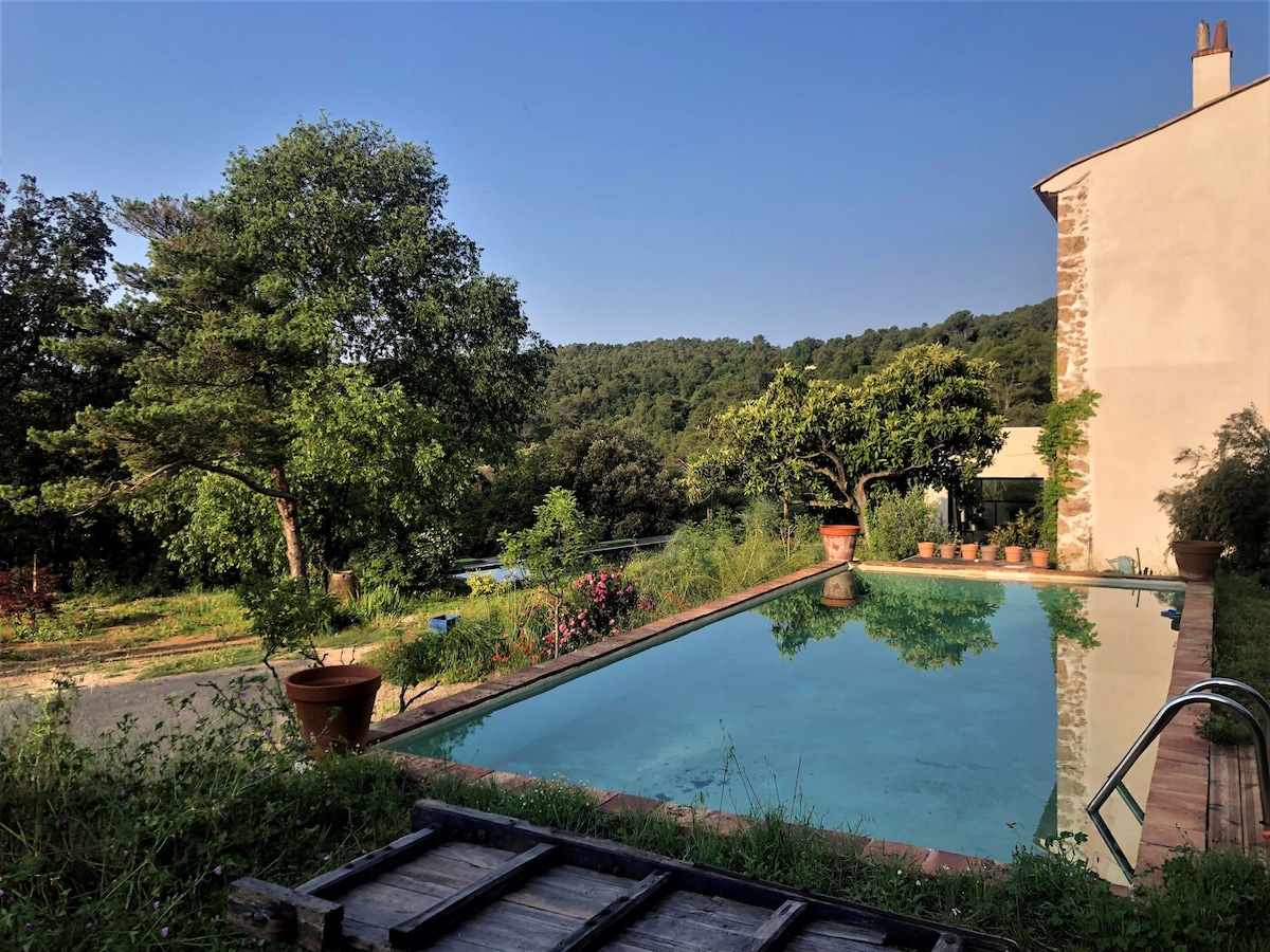 Niezwykły dom w głębi lasu. W zielonej Prowansji, otoczony lasami, gajami oliwnymi, zaroślami i winnicami. Kominek zimą, basen, boisko do petanque, drzemka, chwila medytacji, jogi lub czytania pod pagodą w lesie. W samym sercu natury, w wyjątkowym otoczeniu. Domek z wszelkimi wygodami, klimatyzowany, położony w spokojnie, aby można było odpocząć i odłączyć się od codzienności. Parking. Ogrodzenie dla naszych przyjaciół zwierząt. Idealne wakacje, aby odwiedzić piękne miejsca.