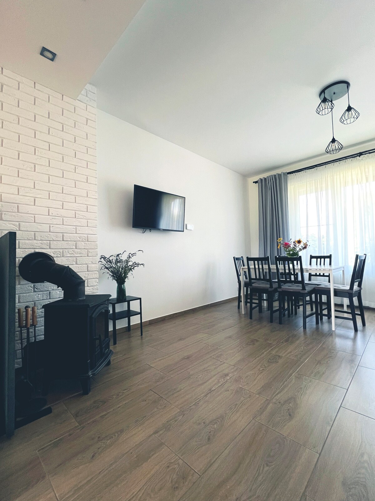 Popatrz w rozgwieżdżone niebo i zapomnij o wszystkim innym. Prezentujemy piękny apartament z widokiem na rzekę , dwie sypialnie , salon z aneksem kuchennym , jadalnia oraz łazienka , kuchnia w pełni wyposażona w zmywarkę oraz piekarnik , w łazience pralka , duży taras z miejscem do grillowania , na wspólnej części do użytku wszystkich Naszych gości balia z hydromasażem , kajaki , łódka , plac zabaw dla dzieci , miejsce na ognisko oraz pomosty do wędkowania