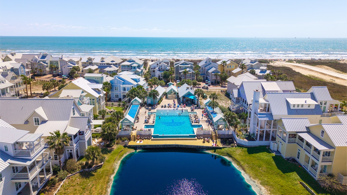 Enjoy a relaxing stay at this upscale Port Aransas townhome just minutes from the beach. Step out the backdoor to a shared heated pool, perfect after a day in the sun. This 3-bedroom, 3-bath retreat sleeps 10 and includes a full kitchen, laundry, and all essentials for a stress-free getaway. The primary suite is on the first floor; upstairs offers two private bedrooms, each with its own bath, plus a cozy loft with a TV and sleeper. STR# 0584969