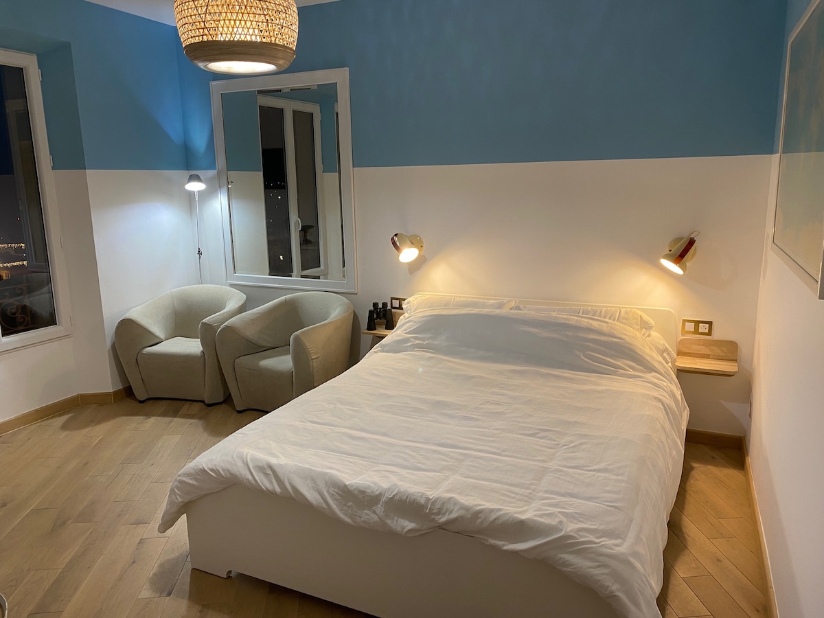 Beau studio dernier étage • Climatisé • Face mer