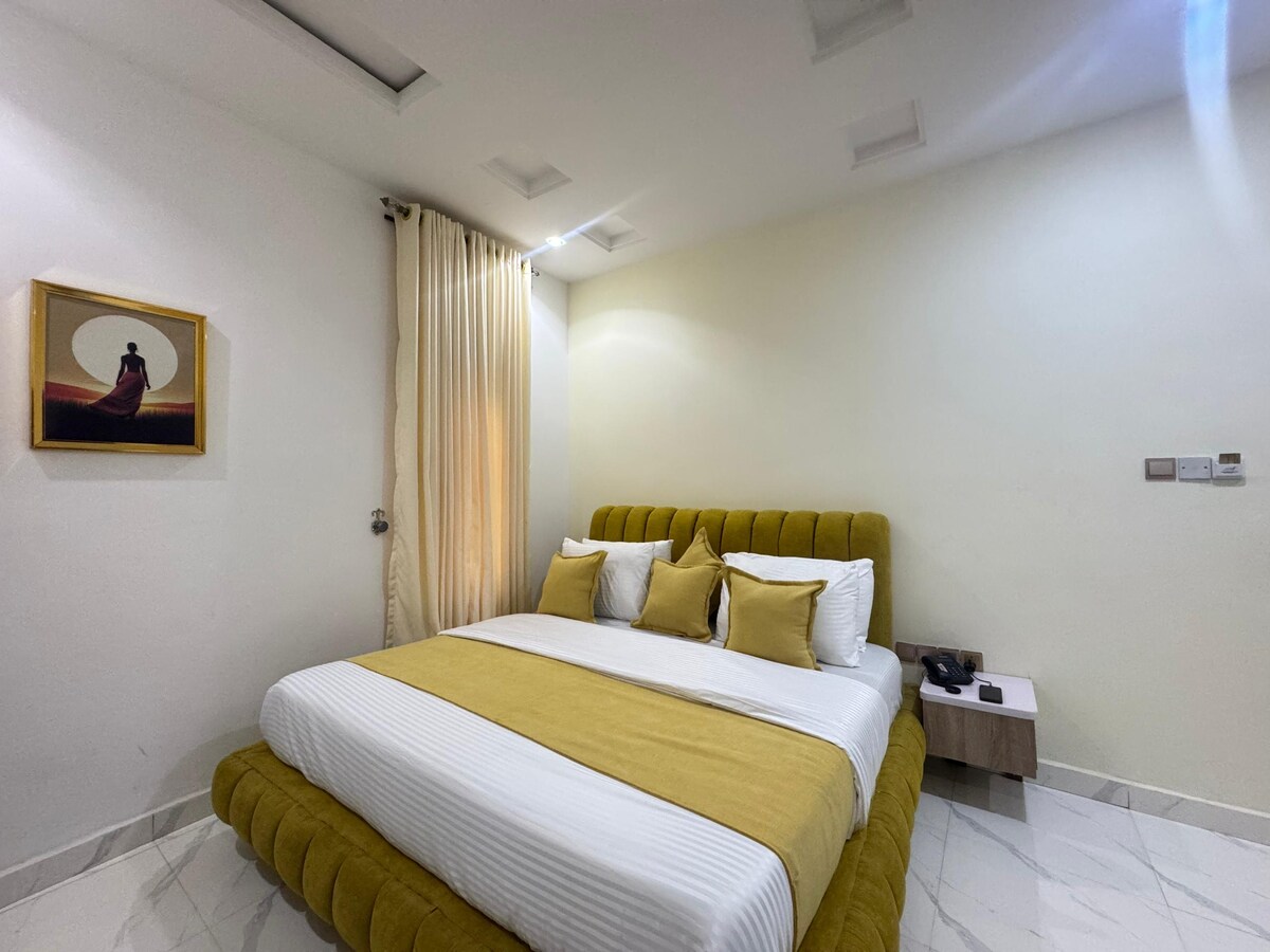 Przytulny pokój Super Deluxe w naszym hotelu w mieście Portharcourt Ciesz się przestronnym, klimatyzowanym pokojem z pluszowym łóżkiem, telewizorem Smart TV, Wi-Fi i łazienką. Rozpocznij dzień od bezpłatnego śniadania, zrelaksuj się przy basenie lub w eleganckim salonie. Restauracja na miejscu, zasilanie 24/7, codzienne sprzątanie i bezpłatny parking wliczone w cenę. Idealne do pracy lub wypoczynku. Komfort, wygoda i gościnność w jednym miejscu!