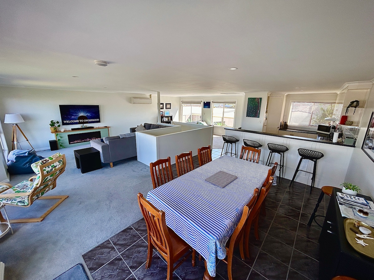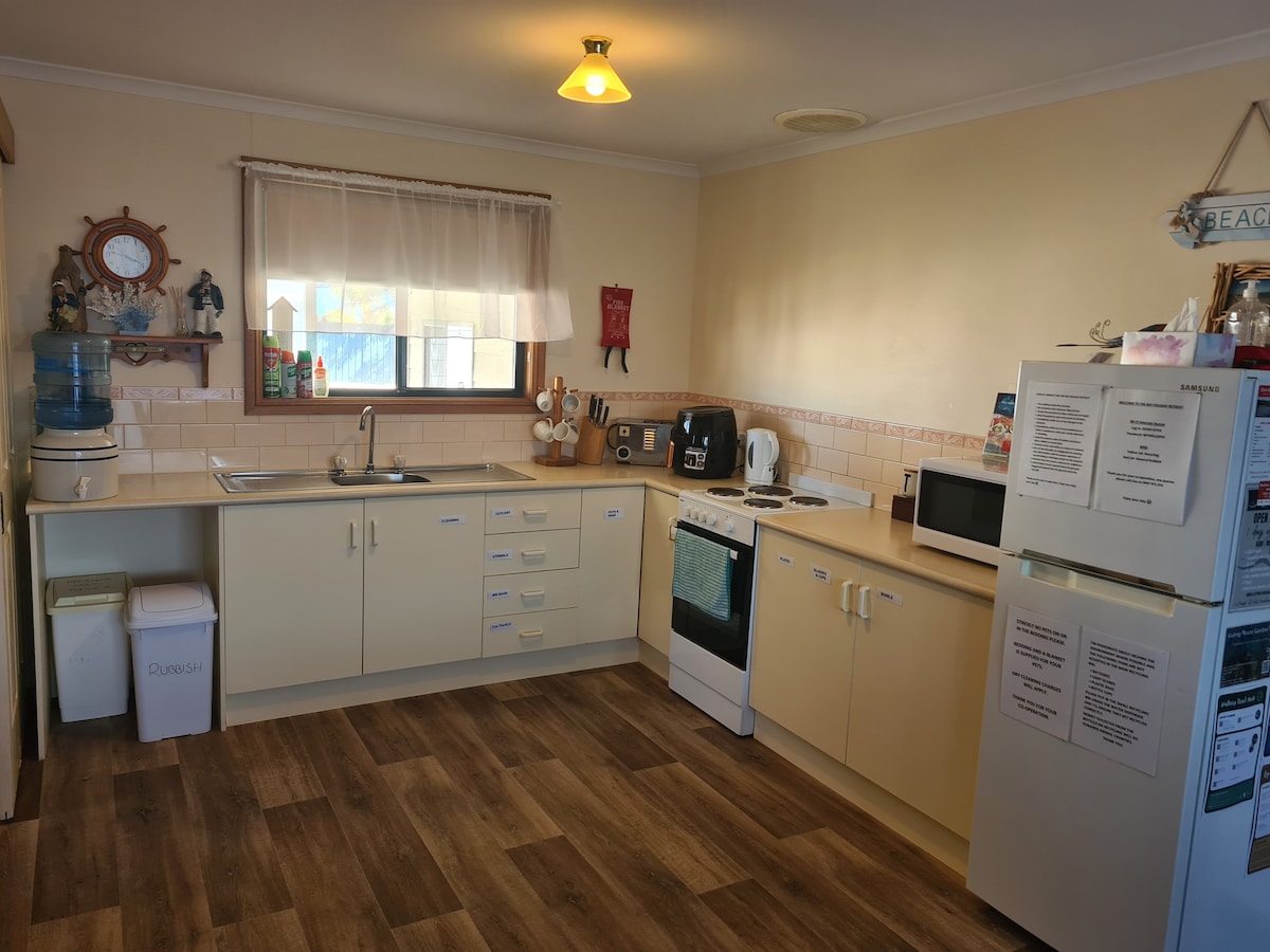 Pięknie umeblowany dom na parterze naprzeciwko bezpiecznej plaży kąpielowej. Samodzielny dom ma kuchnię, salon, jadalnię i pokój z basenem. Pergola na świeżym powietrzu do spożywania posiłków i grillowania. Stół i krzesła z przodu. Prysznic na zewnątrz na zachodnim krańcu domu. Miejsca dla 6 osób. Łatwy spacer do wszystkiego. Obowiązkowe miejsce pobytu w Port MacDonnell. Minimalna rezerwacja na długie weekendy i 3 noce w okresie Wielkanocy 2 noce w okresie świąt Bożego Narodzenia. Jeśli przyjeżdżasz z dziećmi, wymień je niezależnie od wieku. Dostępna jest telewizja streamingowa