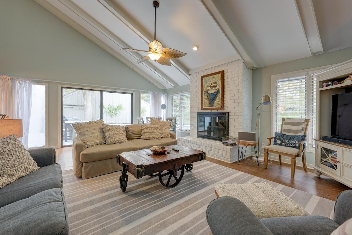 Warm, modern, and designed with character—this newly remodeled 2-bed/2-bath is the closest condo to Hilton Head's hidden gem beach, with lagoon and sound views. King bed in the primary, twin beds in the kids' room: screened-in sunroom, 3 pools, hot tub, tennis. Fully stocked kitchen with a guest-favorite coffee bar, restocked fresh each stay. In-unit laundry, big-screen TVs in every room, all the beach gear you need (cart, chairs, boards, toys, and more), 400 MB Internet—no cleaning fee!