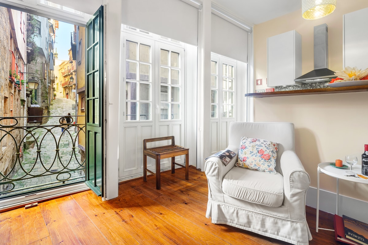 Witamy w naszym Arty Studio, oferującym prawdziwie wciągające i inspirujące doświadczenia życiowe. Znajdziesz się na „Rua Infante D. Henrique”, jednej z najbardziej kultowych ulic w sercu Ribeiry w zabytkowym centrum Porto. Z balkonu zobaczysz słynny „Palácio da Bolsa”, a tuż za rogiem, nad brzegiem rzeki, odkryjesz tętniący życiem i czarujący plac Ribeira, legendarne miejsce pełne urzekającej mieszanki barów, sklepów i tętniących życiem targowisk.