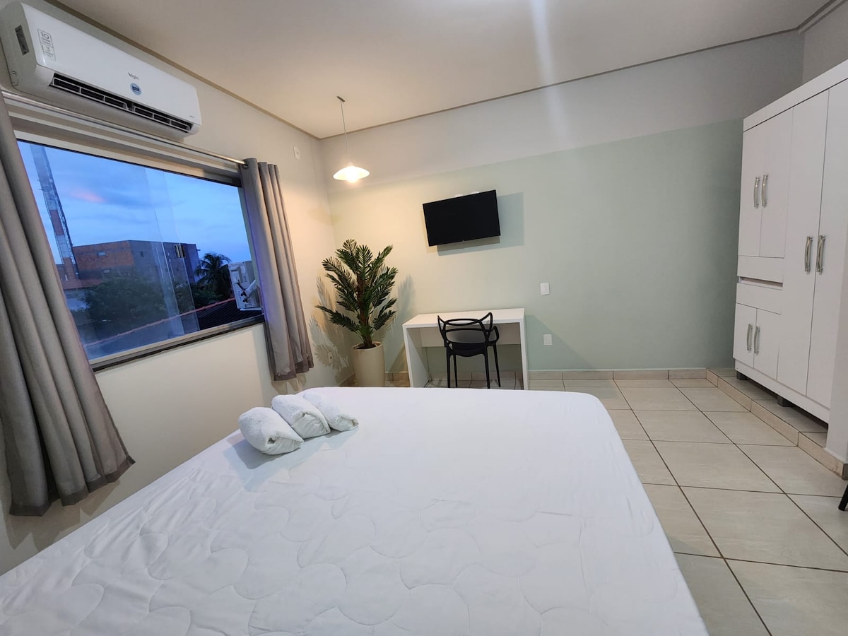 Seja muito bem-vindo! Apartamento tipo kitnet acolhedor e prático localizado na esquina da Praça do Cristo, no coração da cidade. Próximo ao parque de exposições, bancos, farmácias, supermercados, postos de combustível, lanchonetes, lavanderia, rodoviária, padaria num raio de aproximadamente 500 metros. Aqui, você terá tudo que precisa para uma estadia confortável, funcional e com uma localização estratégica.
