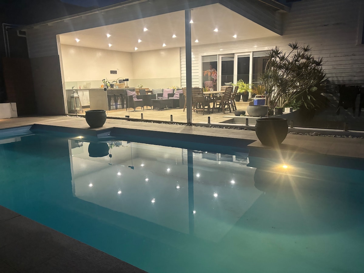The spacious, open-plan living area flows onto a private deck, perfect for alfresco dinners or soaking up the salt air Our updated kitchen, featuring a dedicated coffee nook specifically designed for those slow, quiet morning Bedrooms with modern touches to ensure a stylish, restful stay. High-end double-glazed, tinted windows keep the interiors cool, quiet, and completely private, letting you switch off from the world the moment you step inside Beyond the deck, enjoy a generous, backyard