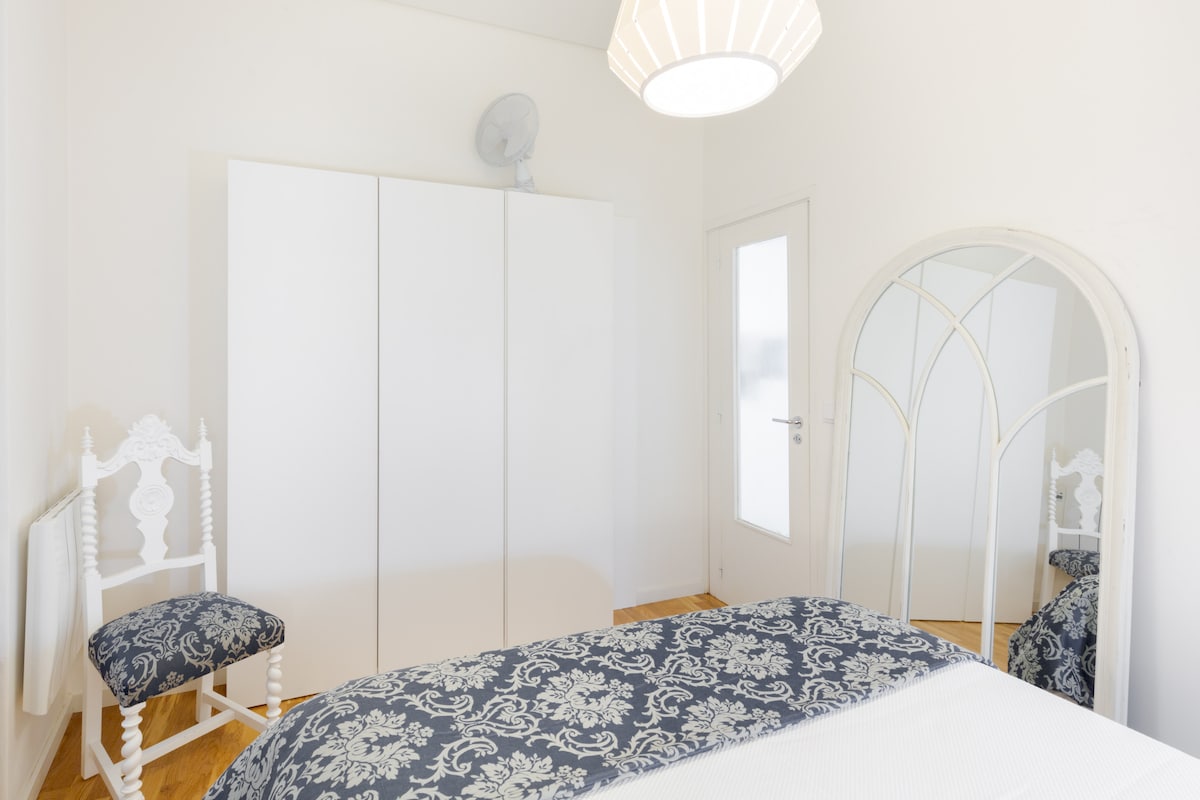 Apartament dla maksymalnie czterech osób znajduje się na piętrze i jest wyposażony w klimatyzację, pralko-suszarkę, pokój do medytacji / mini siłownię oraz balkon od strony frontowej. Sypialnia na niższym piętrze otwiera się do salonu przez drzwi kieszonkowe. W pobliżu Rua de Santa Catarina i rynku Bolhão. Dla gości podróżujących z dziećmi na życzenie dostępny jest pakiet dla niemowląt (25 EUR), który obejmuje łóżeczko z pościelą, krzesełko do karmienia, wannę, przybory dla niemowląt i ręcznik dla niemowląt.