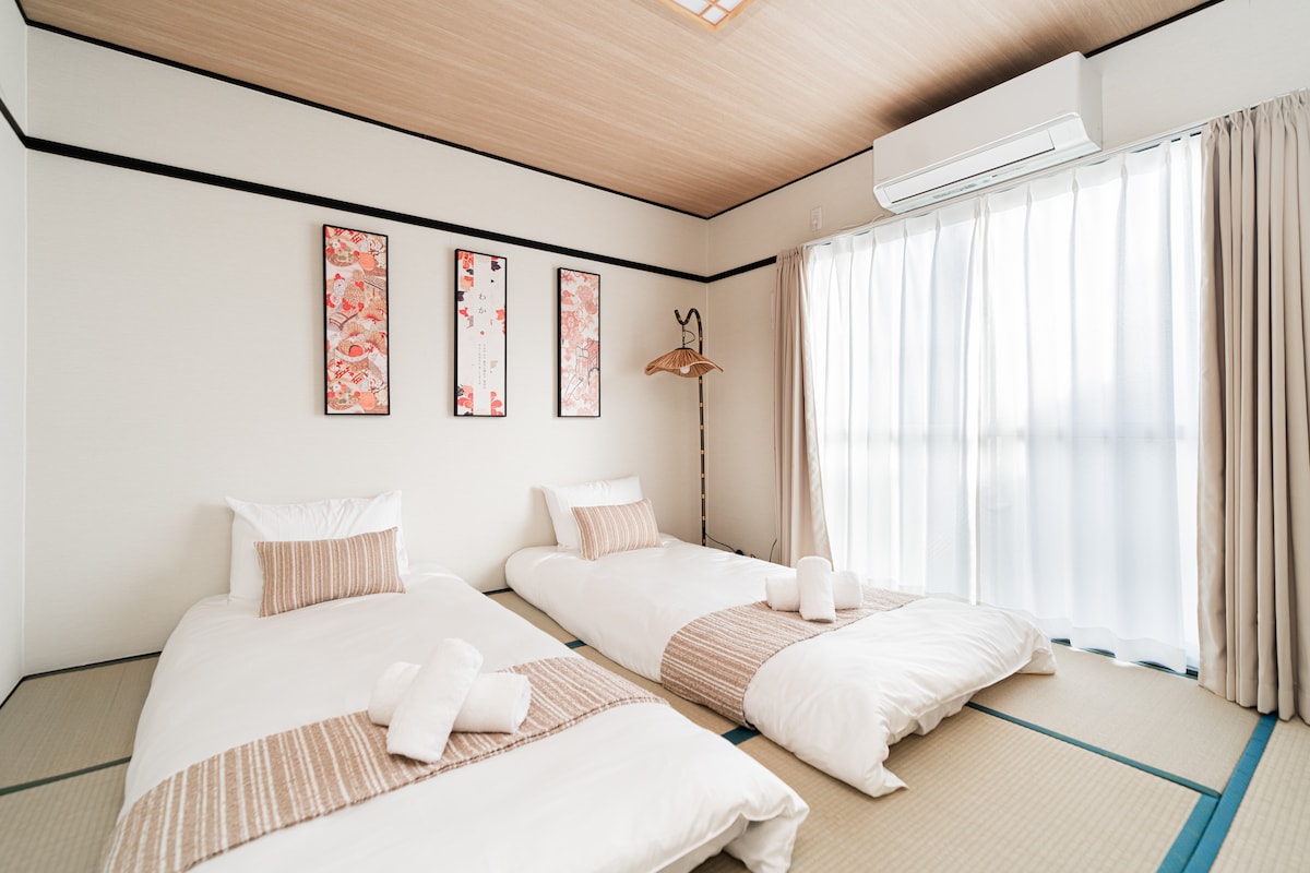 To jest dom wolnostojący 4LDK . 5 minut spacerem od dworca. Zapewniamy udogodnienia, ręczniki, suszarki do włosów, przybory kuchenne, podstawowe przyprawy itp. Jest też wanna, pralka, kuchenka do ryżu, lodówka, kuchenka, czajnik i telewizor. Darmowy parking i bezpłatne WIFI. Dom ograniczony do 8 osób. === Zameldowanie/wymeldowanie === ·Samodzielne zameldowanie i samodzielne wymeldowanie ·Zameldowanie ----- Od 15:00 ·Wymeldowanie ----- przed 11:00 Instrukcje dotyczące samodzielnego zameldowania zostaną wysłane na dzień przed Twoim pobytem.