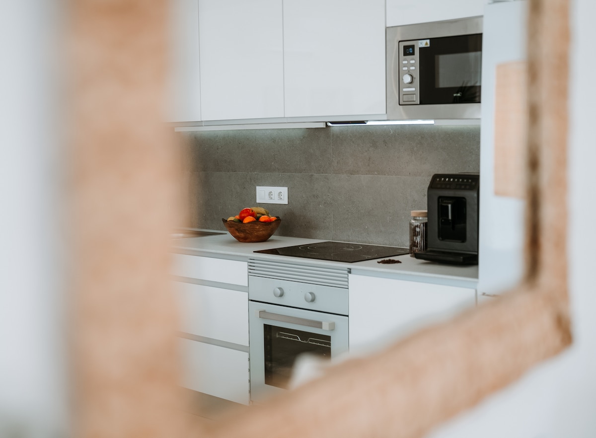 L'Àguila Suites Penthouse with terrace is distributed as follows: on the lower floor 2 double bedrooms, one with en suite bathroom and another bathroom. On the upper floor, there is a large living room. In the same open space is the kitchen, equipped with all the necessary utensils: Nespresso, oven-microwave, ceramic hob, dishwasher, kettle , toaster, etc. It was has free Wi-fi and elevator.