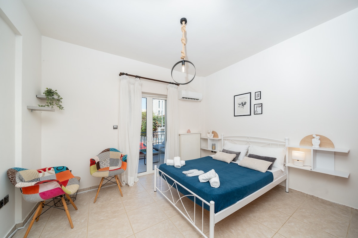 Apartament w stylu minimalistycznym, niedawno odnowiony, 10 minut od lotniska. Niezależny apartament z prywatną łazienką, tarasem, ogrodem i niesamowitym widokiem. Jego elegancki design i nowoczesny styl zapewnią Ci niezapomniane wrażenia z pobytu. Znajduje się na wzgórzu, bardzo blisko: - Metropolitan Expo (10 minut), - port Rafina (15 minut), - Smart Park - Zoo - Stacja metra Idealny na wakacje, zakupy, podróże służbowe lub dla osób, które chcą pracować cyfrowo z szybkim i bezpłatnym Wi-Fi.