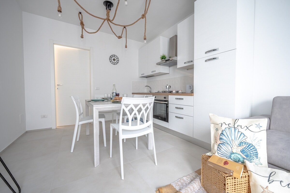 Piękny apartament odnowiony w nowoczesny sposób, składający się z dużej i jasnej kuchni w salonie z piekarnikiem, zmywarki, dużej lodówki na zewnątrz, rozkładanego stołu dla 6/8 osób, telewizora plazmowego i sofy; dwóch sypialni dwuosobowych z pojedynczym łóżkiem i dużymi szafami. Łazienka z brodzikiem, dużym lustrem i zupełnie nowymi toaletami; gorąca woda jest zawsze dostępna, biorąc pod uwagę nowy kocioł kondensacyjny. Znajduje się na 4 piętrze kondominium z windą.