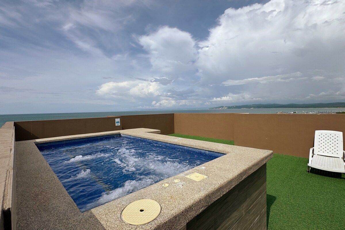 ¡Bienvenidos a nuestra casa frente al mar! Disfruta del lujo con jacuzzi, piscina, BBQ y comedor al aire libre. Lavadora y secadora incluidas. Ubicada en una urbanización segura y tranquila, estamos a 3 minutos en auto o tricimoto de la playa de Jaramijó. Relájate y disfruta de unas vacaciones inolvidables. ¡Reserva hoy y vive la experiencia perfecta!