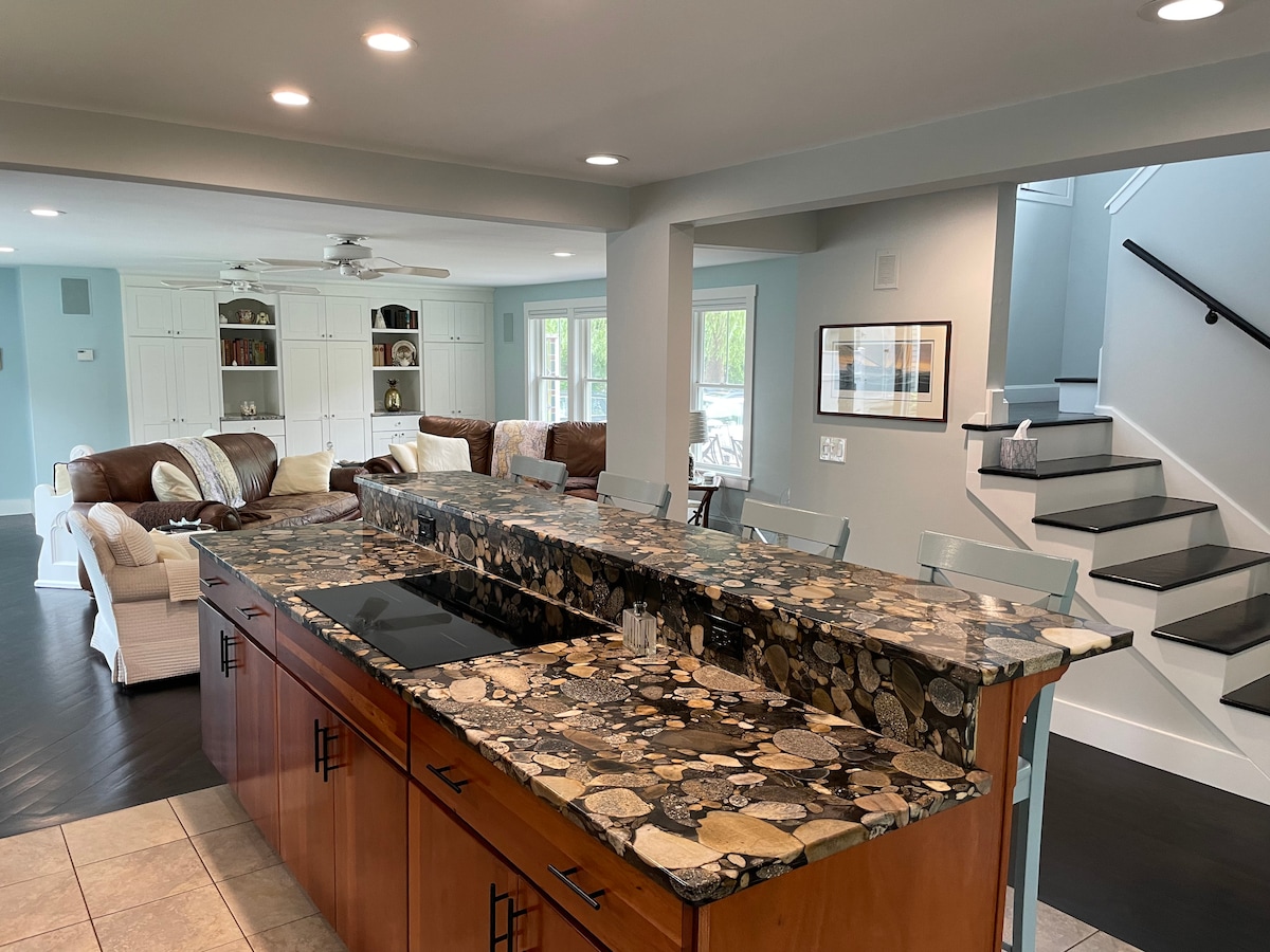 Beach Days & Pineapple Stays! Witamy w nowoczesnym, w pełni odnowionym domu na wybrzeżu w Portsmouth w stanie Rhode Island. Ten przyjazny rodzinom dom, położony w odległości krótkiego spaceru od plaży, oferuje otwarty układ pomieszczeń, zmodernizowaną kuchnię i łazienkę, telewizory Smart TV, pokój gier, zamknięty ogród zimowy oraz prywatne podwórko z nowym patio i grillem na propan – idealne do relaksu po pełnych słońca przygodach. Zewnętrzne kamery monitorujące Blink zapewniają dodatkowy spokój ducha. Idealne miejsce na plażę, przytulne noce i niezapomniane wspomnienia.