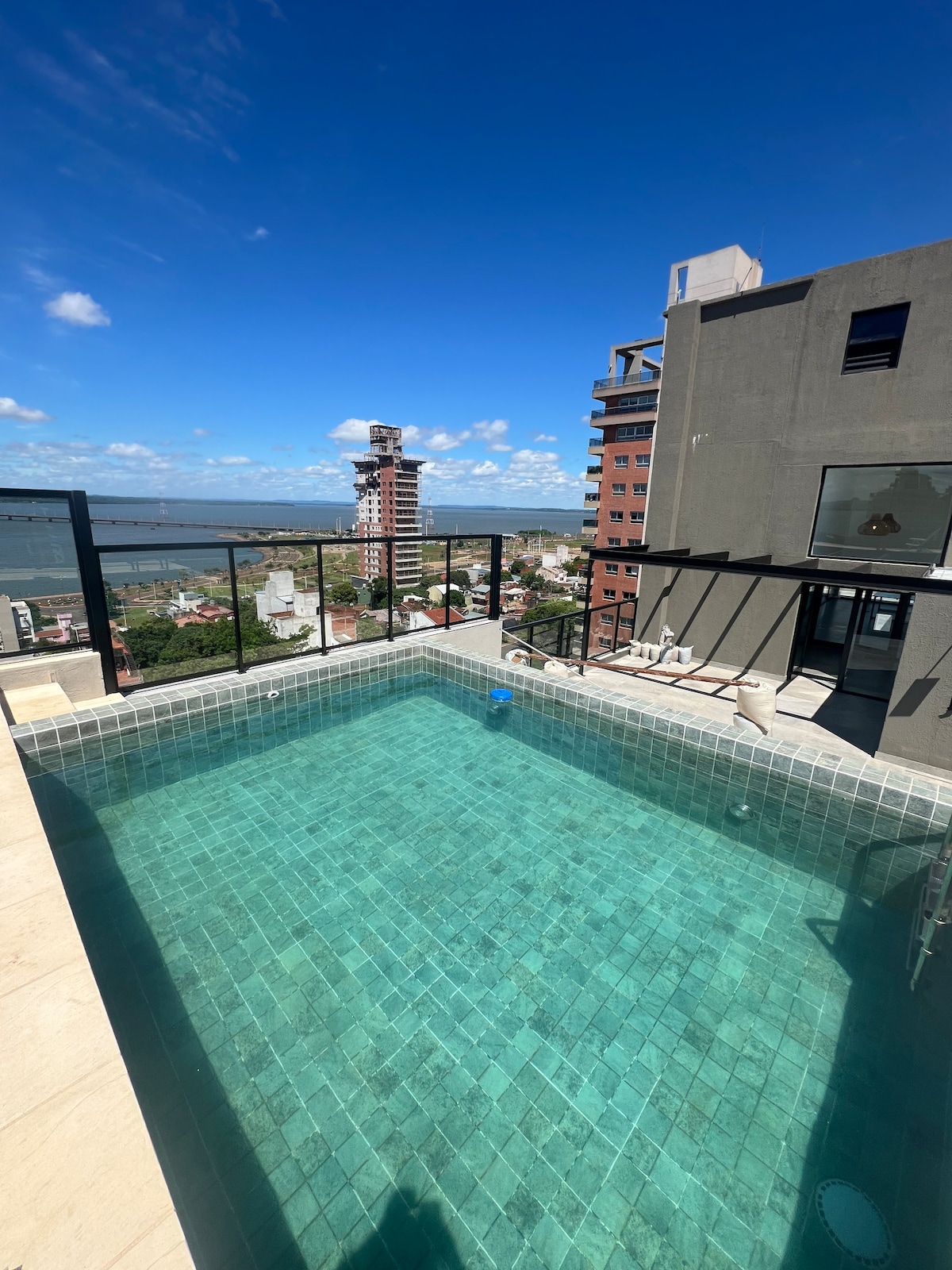 Odkryłem nowoczesne i jasne mieszkanie w Costanera de Posadas, z pięknymi widokami na miasto. Idealne dla osób szukających luksusowych wrażeń: minimalistyczny design, przestronne przestrzenie i detale zaprojektowane z myślą o komforcie. Idealne dla par lub podróżnych, którzy cenią sobie lokalizację, styl i komfort kilka kroków od najlepszych miejsc w mieście i mostu Encarnación Paraguay. 5 minut do centrum, supermarketów, barów i restauracji. Basen z tarasem