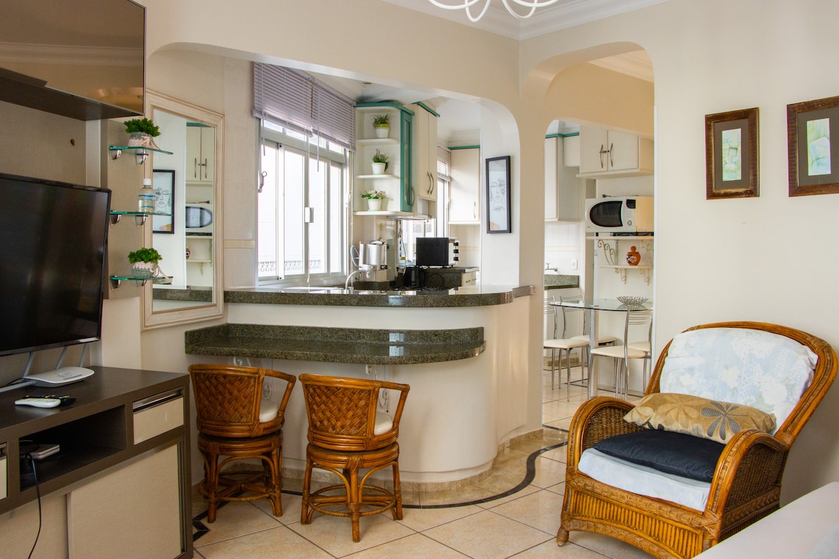 Ciesz się niezapomnianym doświadczeniem w nowoczesnym, przytulnym apartamencie z oszałamiającym widokiem na morze. Każdy szczegół został zaprojektowany tak, aby zapewnić komfort i sprawić, że Twój pobyt będzie naprawdę idealny. Dzięki otwartym przestrzeniom i doskonałej lokalizacji w samym sercu Perequê, Porto Belo, będziesz zaledwie 5 minut od plaży, w pobliżu Bombinhas, w otoczeniu supermarketów i restauracji w odległości spaceru. Zarezerwuj teraz i zapewnij sobie niesamowite dni nad morzem!