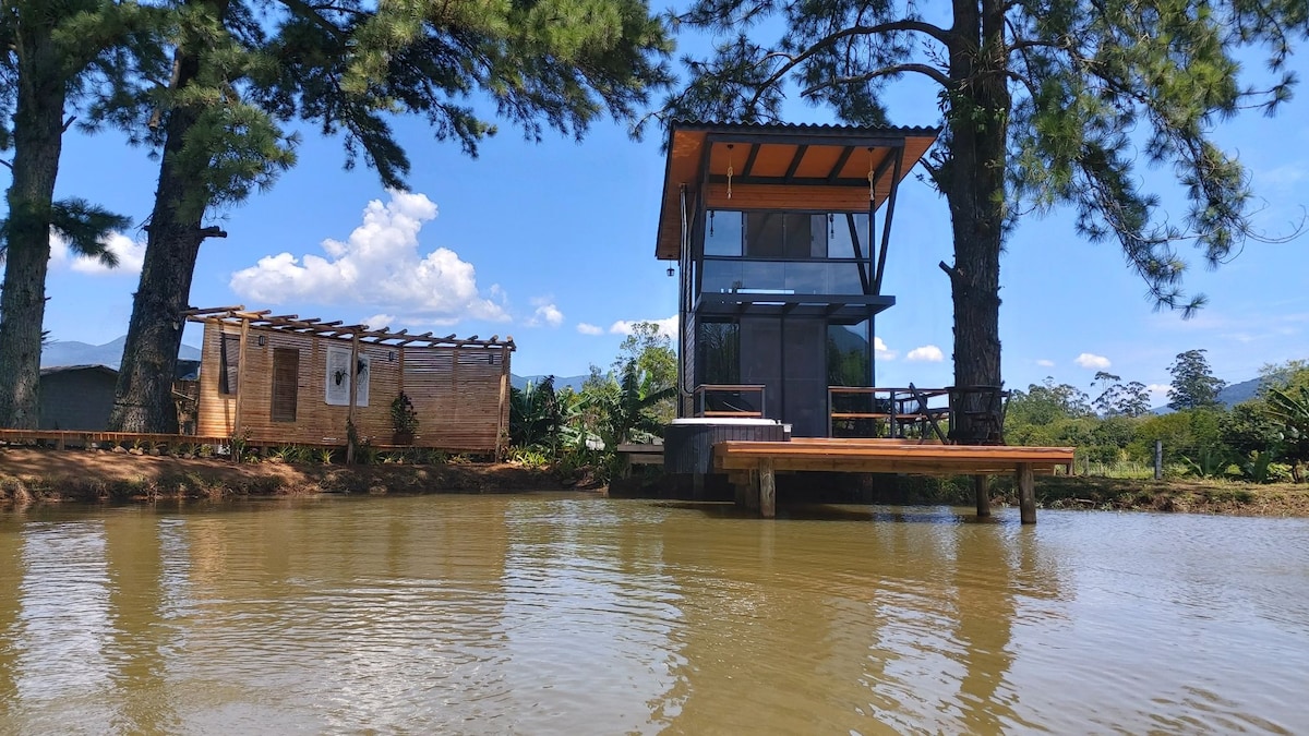 Mamy partnera, który pod drzwi obiektu dostarcza kosz ze ŚNIADANIEM, w którym znajdują się świeże i pełnowartościowe produkty. Koszt jest naliczany osobno. Przyjdź i ciesz się przestrzenią zaprojektowaną, aby odpocząć pośród natury i podziwiać rajski widok. Kompletna i prywatna kabina wisząca nad Lagoa da Pinguela w Osório, zaledwie 1 godz. 15 min od Porto Alegre i 30 min od plaż. Urok wynika z widoku na lagunę i otaczające ją góry. Zachód słońca to oddzielny pokaz.