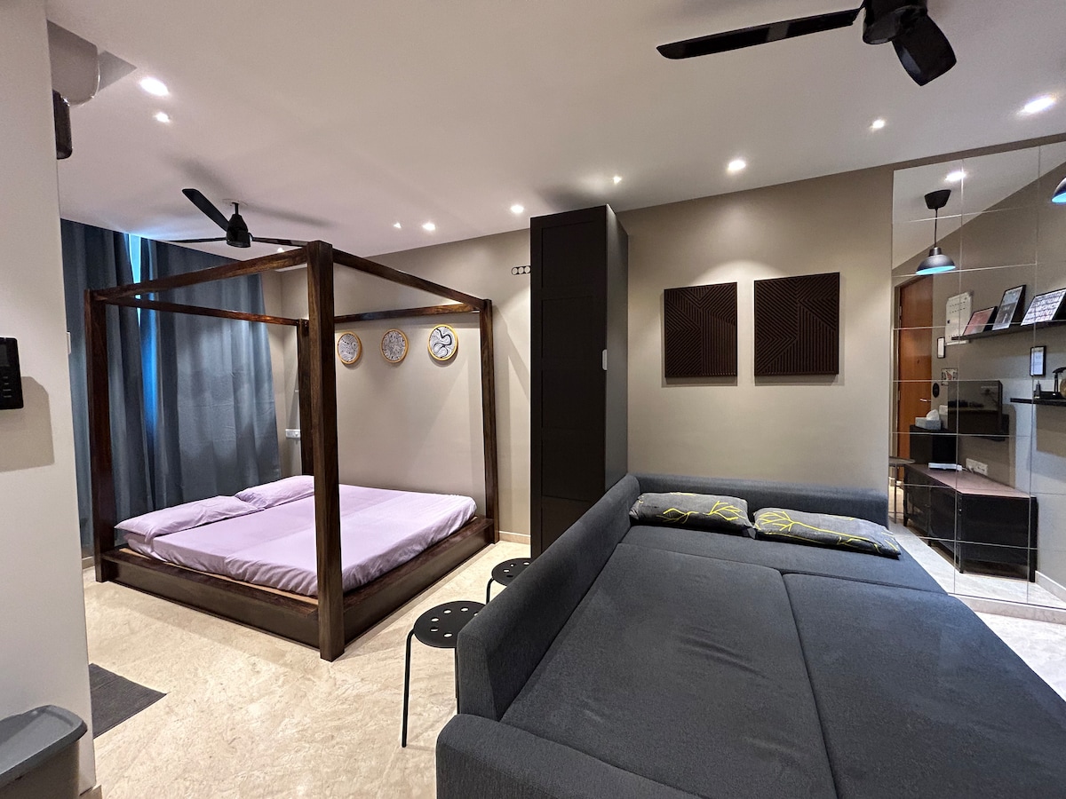 Znajdź spokój i minimalizm w naszym japońskim studio w Hiranandani Estate, Thane. Zaprojektowany z myślą o uspokajającej estetyce, oferuje miękkie łóżko z baldachimem, sofę, telewizor Smart TV, Wi-Fi, w pełni wyposażoną kuchnię, pralkę i codzienne sprzątanie. Obejmuje markowe przybory toaletowe, ręczniki prane na sucho i całodobową ochronę. Blisko kawiarni, klinik i „The Walk”. Idealne na pobyt służbowy, rekonwalescencję lub spokojny wypoczynek.