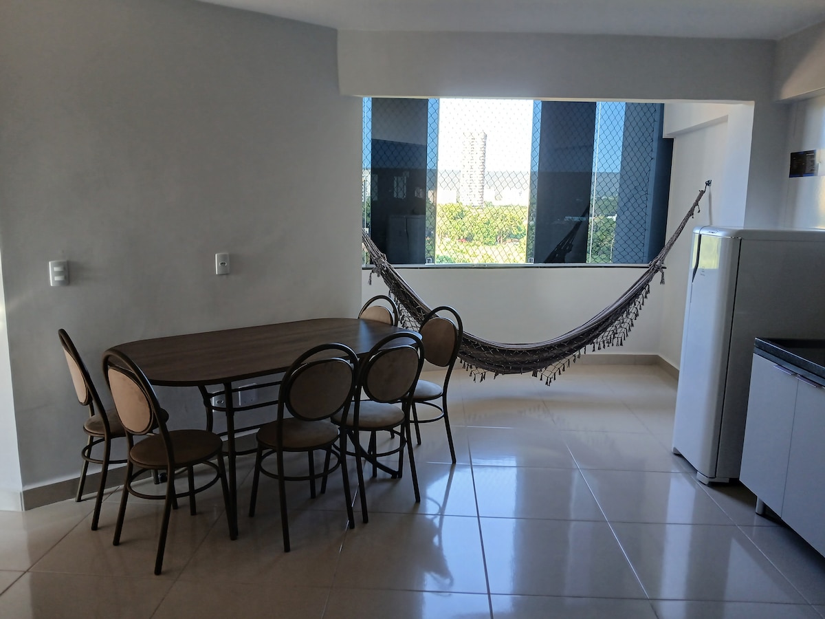 Sua família vai estar perto de tudo ao ficar neste lugar bem-localizado. Ao lado de Supermercado, próximo de Bar, Restaurante, lanchonetes, sanduicherias, padaria, farmácia e a 1,1 Km do Centro da cidade (Parque de Diversões, Feira do Luar, Bares, Praças...), novo Shopping Singapura... O Flat conta com 1 quarto com Cama de Casal, 2 Colchões de Solteiro e Sofá Cama na sala. Ar condicionado na sala e no quarto. A Varanda Gourmet conta com fogão elétrico e Churrasqueira a carvão!!!🥩🥓 😃
