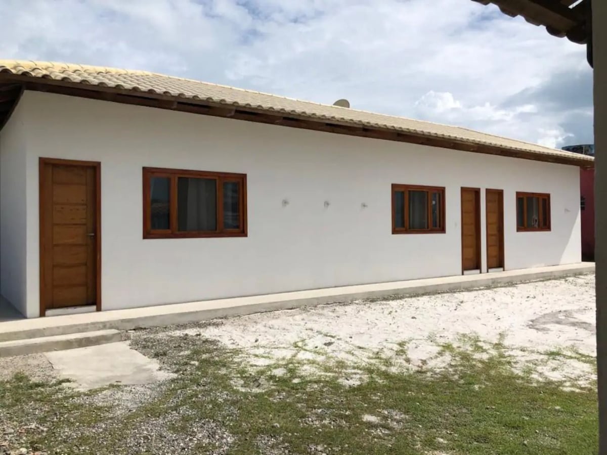 3 quartos, ou seja: 1 suíte + 2 quartos, tdos c/ camas queen e ar condicionado. Mais 2 camas de solteiro. Total: 5 camas. Banheiro social e lavabo. Cozinha c/ geladeira, freezer , microondas, Cooktop, forno elétrico, air fryer, liquidificador, misteira, taças, louças. Sala de jantar e TV integradas. Piscina c/ cascata em pedras naturais; chuveirão; churrasqueira. A 150m do mar. Disponibilizamos roupas de cama. Serviço de cozinheira incluso em alta temporada (sempre consultar disponibilidade).