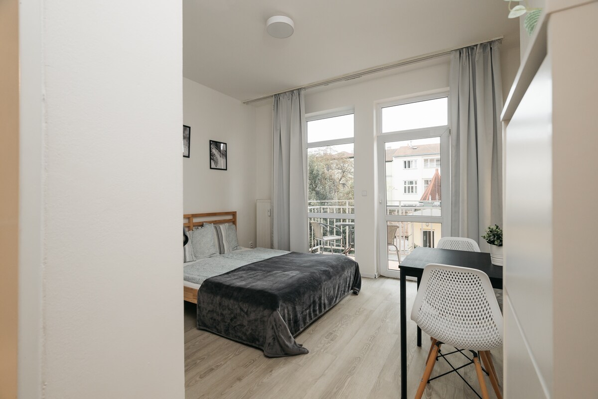Cozy apartment in Prague 1, just minutes from Wenceslas and Republic Squares. Fully equipped kitchen, comfortable living area, and a king-size bedroom with smart TV. Modern bathroom facilities. Perfect base to explore Prague’s historic center. Located in Prague 1 – New Town, everything is within walking distance. The area is lively, full of cafes, restaurants, and shops. All public transport—metro, tram, bus, and train—is just a 2-minute walk away, making it easy to explore the city.