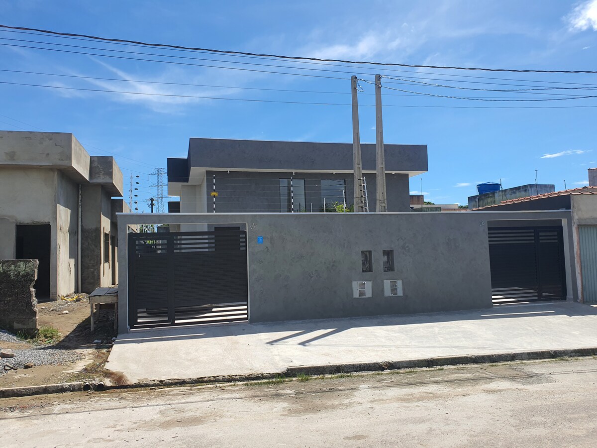 🏡 Dwupoziomowy apartament w zamkniętym osiedlu z alarmem i monitoringiem w spokojnej dzielnicy mieszkalnej Itanhaém ⛱ 850 m od plaży Cibratel 🅿️ 01 miejsce parkingowe EKSKLUZYWNY 👙 basen i grill (ogrzewany basen, patrz warunki) 📺 Smart TV z Claro Box + Netflix Wysokiej jakości🛜 Wi-Fi ❄ Klimatyzacja w apartamentach Wyposażona 🍴 kuchnia 🛌 02 apartamenty dla maksymalnie 6 osób 🛋 Pokój z materacem + rozkładana sofa + wentylator dla 2 osób