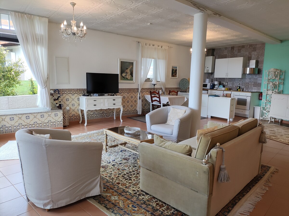 This is an amazing duplex apartment with 3 spacious bedrooms and 2 full bathrooms. All 3 bedrooms (1 king size bed; 1 double bed; 2 single beds; 1 king size sofa bed) have access to a large seaside terrace with jacuzzi and a panoramic view to the atlantic sea. The appartment has a fully equipped kitchen, a dining room with a cosy fire place and access to another balcony including a table for outdoor meals.