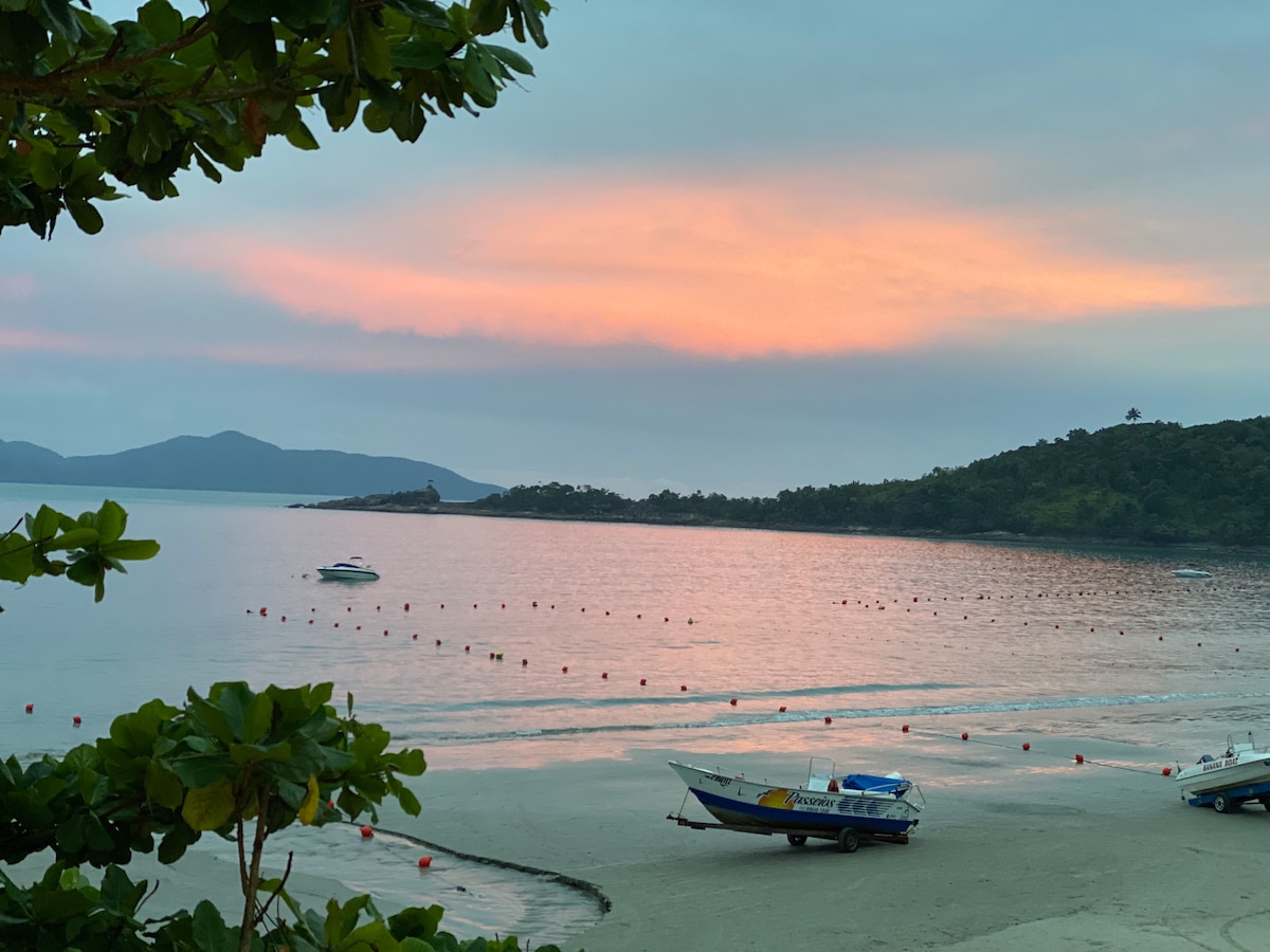 A casa é na Praia da Fortaleza, de frente para o mar, pé na areia, em um terreno muito grande, cercado de muito verde, árvores e muita privacidade em uma linda casa de alto padrão com todo conforto. É uma casa térrea, linda, e a área externa é um verdadeiro paraíso. A casa é perfeita para casais e famílias (com crianças).