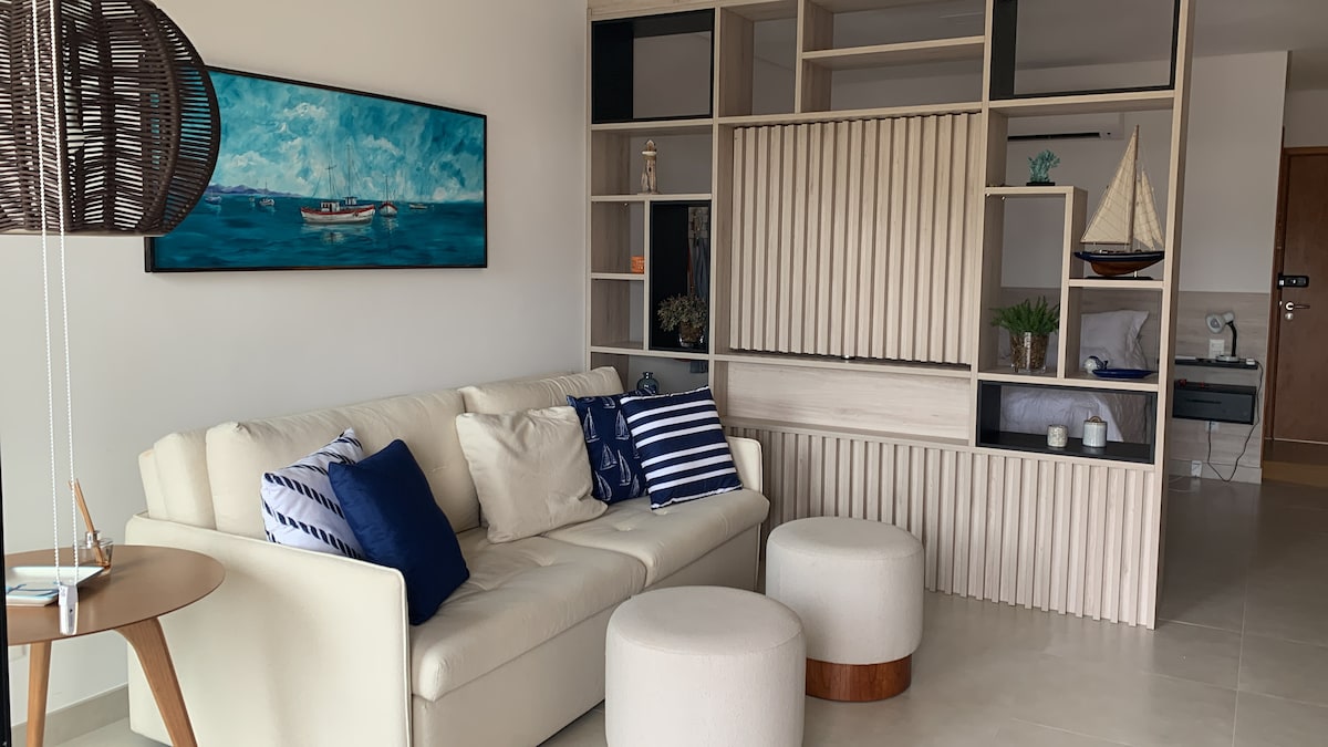 Piękne studio z widokiem na morze, nowoczesne i bardzo przytulne wnętrze, które zadowoli Ciebie i Twoją rodzinę. Apartament znajduje się w pobliżu centrum handlowego Ribeira Maal – 200 m Yacht Club – 150 m Voga Marine - 100 m Marina Timoneiro – 250 m Nabrzeże Miejskie – 300 m Odległość od plaż: Ribeira - 450 m Dionísia - 650 m Flamengo - 900 m Flamenguinho - 1100 m 7 Fontes – 2000 m Lázaro - 800 m Sununga - 850 m Santa Rita - 2500 m Enseada - 1900 m Lamberto - 1300 m