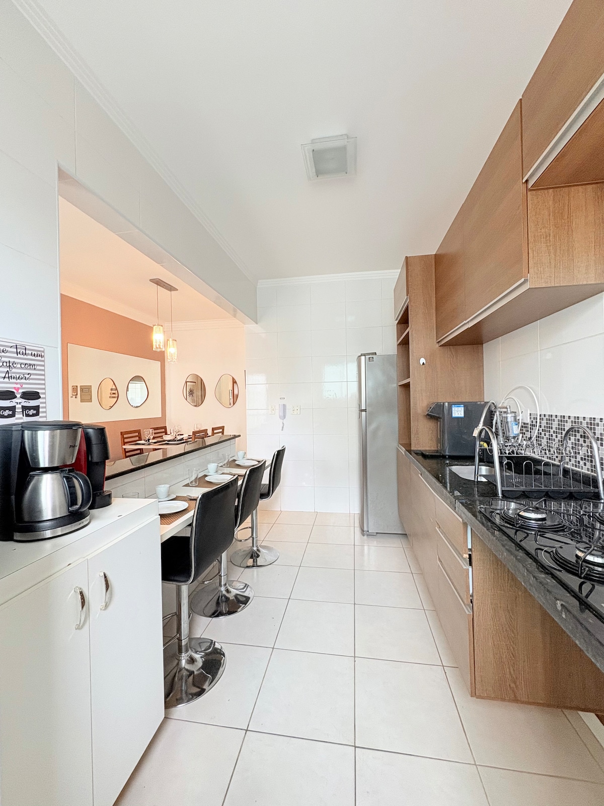 Zrelaksuj się z całą rodziną w tym spokojnym miejscu. Mamy komfortową przestrzeń do odpoczynku i wypoczynku. Pokoje z klimatyzacją, pokój dwuosobowy z 65-calowym telewizorem, pokój dzienny z wentylatorem sufitowym, 55-calowym telewizorem z Netflix i Wi-Fi, w pełni wyposażona kuchnia z urządzeniami gospodarstwa domowego. Zaledwie 50 metrów od plaży, obok najbardziej znanej pizzerii w Praia Grande, restauracji i piekarni, świetna lokalizacja. W budynku znajduje się również sala gier i basen oraz miejsce do spotkań.