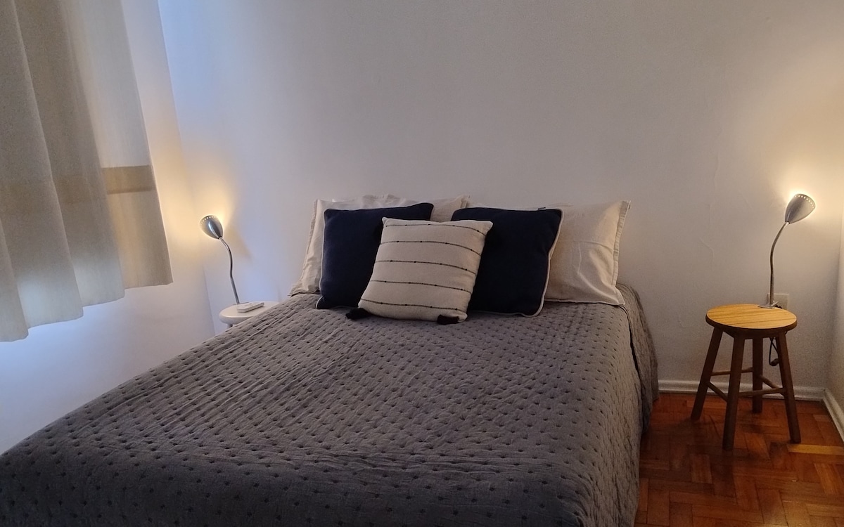 Eleganckie i nowoczesne studio dla dwóch osób, w pełni umeblowane, położone w dzielnicy Ingá, jednej z najlepszych w Niterói. 350 metrów od brzegu, w pobliżu MAC i przystani. W pobliżu supermarketów i kawiarni. Kuchnia wyposażona jest w płytę kuchenną, piekarnik elektryczny, kuchenkę mikrofalową, lodówkę, blender, opiekacz do kanapek i ekspres do kawy oraz niezbędne przybory kuchenne. Klimatyzacja. Łazienka z doskonałym prysznicem elektrycznym. Duży blat do pracy/studiów, z szufladami. Pralnia we wspólnej części.