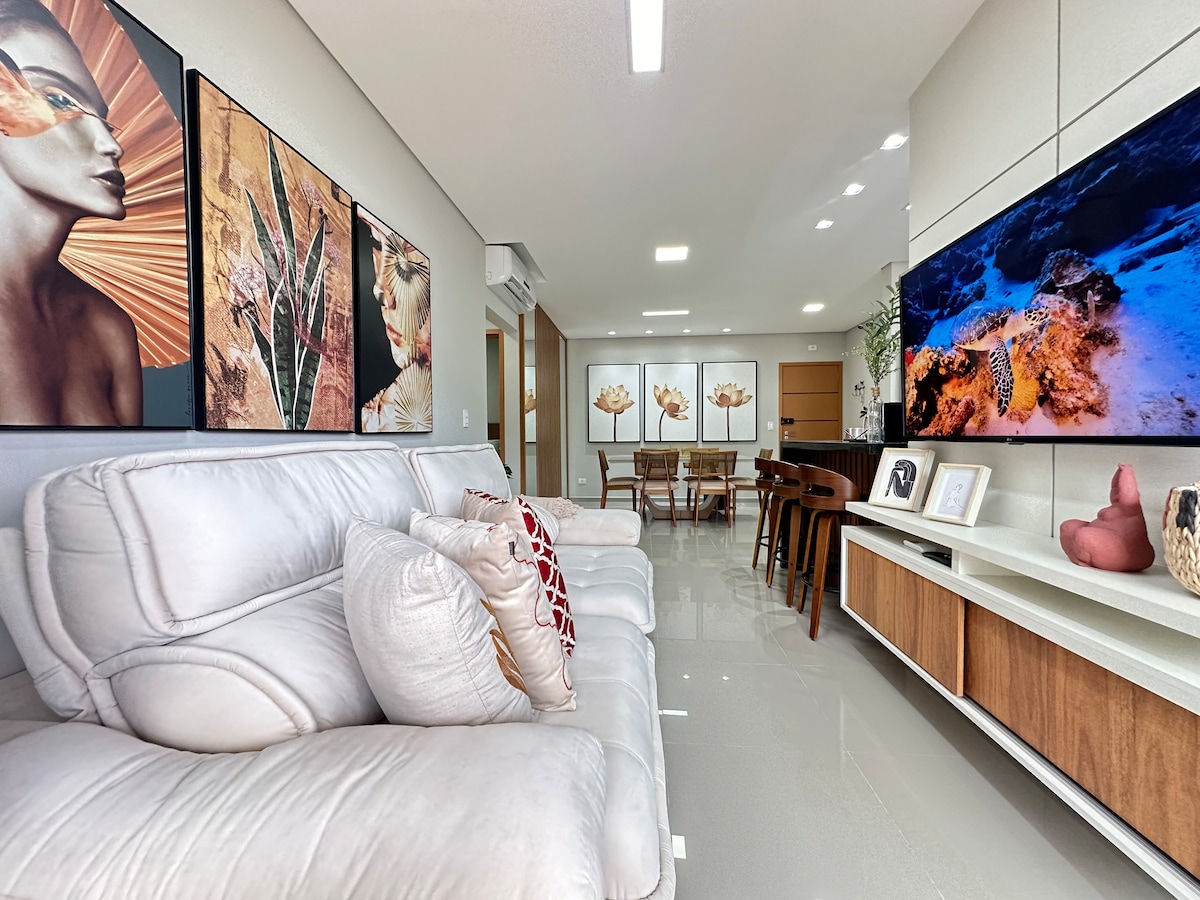 Ciesz się tym, co najlepsze w Ubatuba w tym nowym apartamencie z: 2 łazienki, pościel i ręczniki, grill na balkonie, klimatyzacja szczelinowa 290 metrów od Praia das Toninhas The apartment is Novo, with design signed by architect, super chic, cozy and high-end decor Lokalizacja jest kluczem do tego Airbnb, ponieważ znajduje się kilka kroków od Toninhas Beach i 3 minuty samochodem od Praia Grande Oprócz łatwego dostępu do autostrady zarówno dla plaż południowych, jak i południowych.