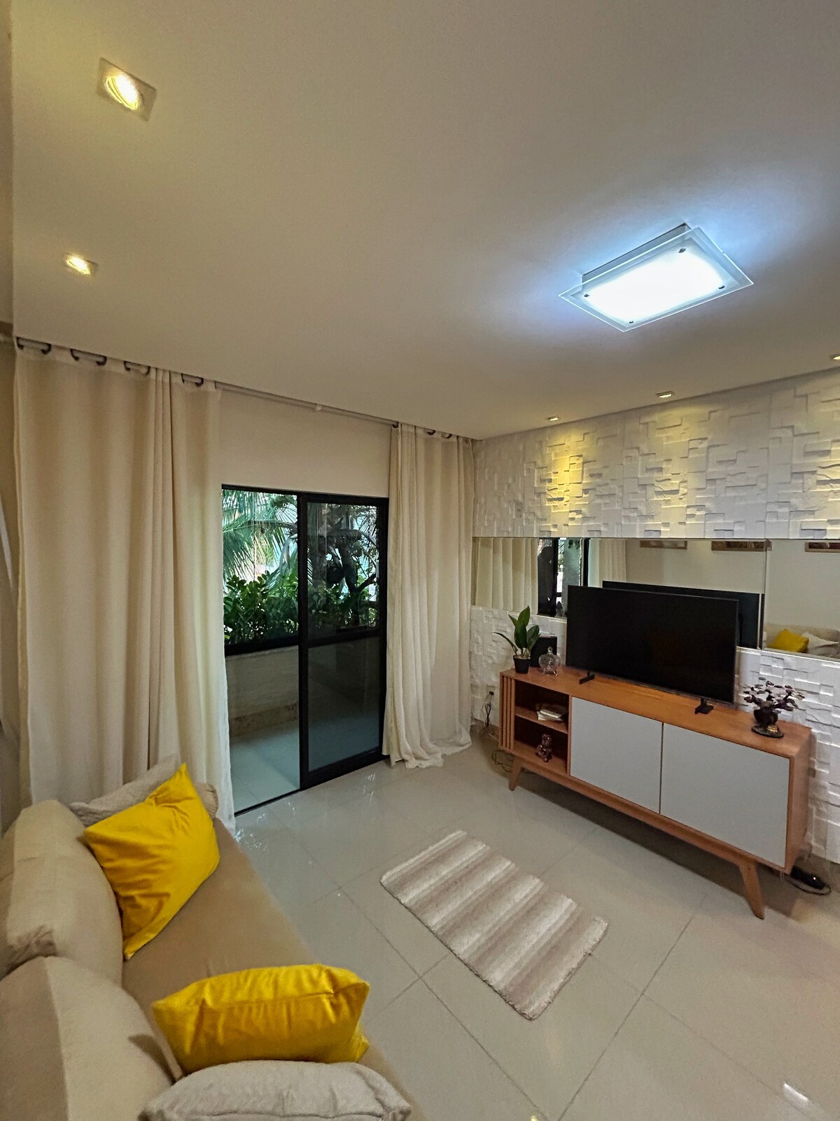 Excelente opção para lazer familiar. Condomínio fechado e seguro, localizado no charmoso Village Pé na Areia, com portaria e estacionamento privativo. Acesso direto à praia a menos de 50 metros, na melhor praia de Salvador. Supermercado a 100 metros e farmácia a 300 metros. Situado a 7 km do aeroporto.