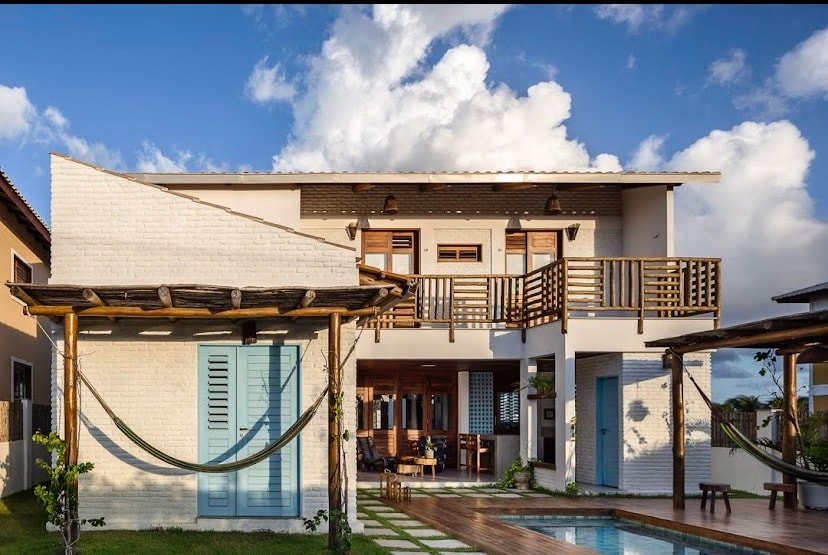 Czy pamiętasz „Mamma Mia!” i „Przed północą” z bielonymi domami o kwadratowym wyglądzie, z jasnoniebieskim dachem, drzwiami i oknami nad morzem? To dom z grecką architekturą na brazylijskim wybrzeżu. Przytulna przestrzeń z 4 apartamentami z łóżkiem typu super king-size, kuchnią, salonem, klimatyzacją, umeblowane. Znajdują się tu 3 apartamenty o powierzchni 18 m2 i 1 apartament o powierzchni 27 m2, z panoramiczną wanną i przyjemnym balkonem, wszystkie 1 minutę od piasku na plaży, w raju o nazwie Flecheiras.