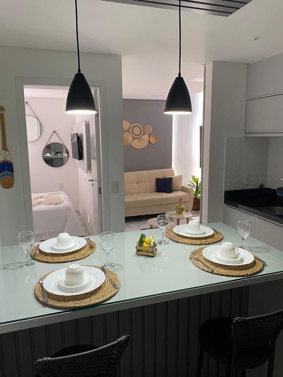 Aproveite o charme e tranquilidade de um flat novíssimo, finamente decorado e equipado para você viver momentos especiais. Aqui tudo é da melhor qualidade. Você vai se sentir em um spa! Se quiser descansar, você pode tomar um vinho no nosso jardim gourmet ou curtir a nossa cobertura com piscina de borda infinita com vista para o mar e para o pôr do sol da lagoa. Mas, se precisar trabalhar, projetamos uma ótima bancada e disponibilizamos wi-fi de excelente qualidade!