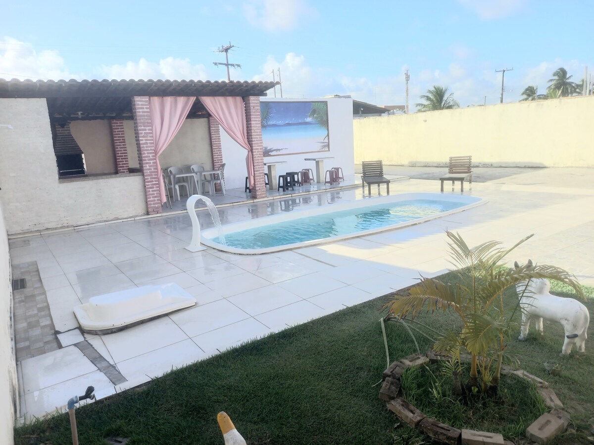Przytulny dom na plaży z zieloną przestrzenią, przestrzeniami użytkowymi i basenem. Blisko plaży, tylko 100m do morza. Idealne miejsce na spędzenie dnia w basenie lub nocną pogawędkę na trawie. Blisko innych atrakcji wybrzeża Sergipano. Jesteśmy 15 minut od Lagoa dos Tambaquis, 30 minut od Orla por do Sol, skąd można wyruszyć do Ilha dos Namorados, Croa do Goré i Praia do Viral. Mamy klimatyzację w trzech sypialniach, Wi-Fi w całym domu.
