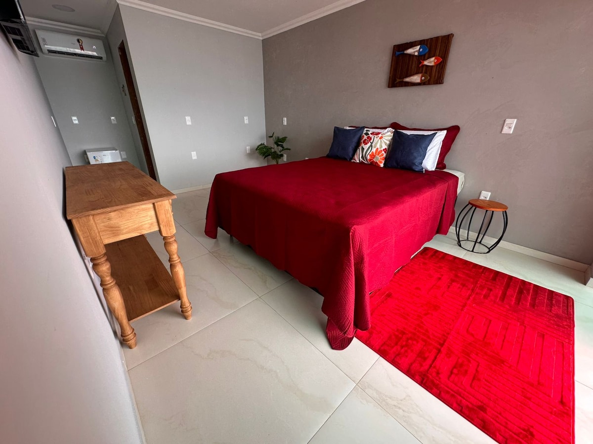 Najlepsza lokalizacja!! Centralna i zaledwie kilka kroków od plaży Abraham. Apartament z kuchnią, przestrzeń na zewnątrz z prysznicem i grillem - wszystko prywatne. Nie można przegapić!!! Telewizor, Wi-Fi, 1 podwójne łóżko i 1 bardzo wygodne pojedyncze łóżko (zapewniamy pościel i ręczniki). Klimatyzacja typu split i wentylator sufitowy. Wejście jest indywidualne . Idealne dla pary i/lub pary z dziećmi ze względu na krążącą przestrzeń w akademiku. Idealne miejsce na relaks i najlepsze z Ilha Grande.