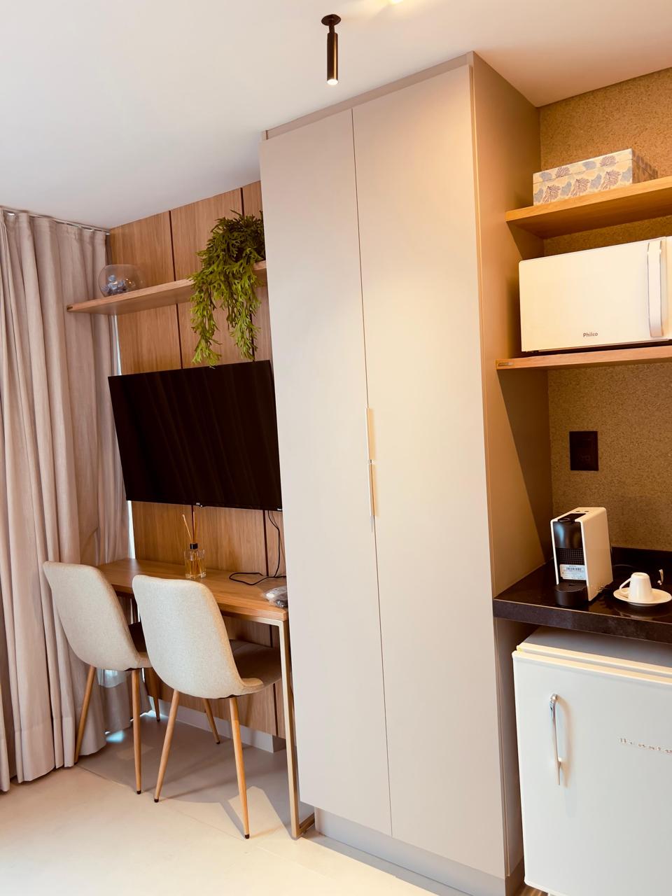 Apartament o wysokim standardzie w budynku One Way w Tambáu. Kompletna struktura dla Ciebie, który przyjeżdża do pracy lub na wypoczynek, Wi-Fi we wszystkich obszarach, średnio 800 metrów od plaży. Posiadamy łóżko typu Queen, w pełni wyposażoną kuchnię, oczyszczacz wody, telewizor Smart, prywatny szybki internet, klimatyzację, żelazko i deskę do prasowania, pościel i ręczniki. Miejsce parkingowe rotacyjne, zadaszone i bezpłatne. Basen jest zamknięty w poniedziałki.