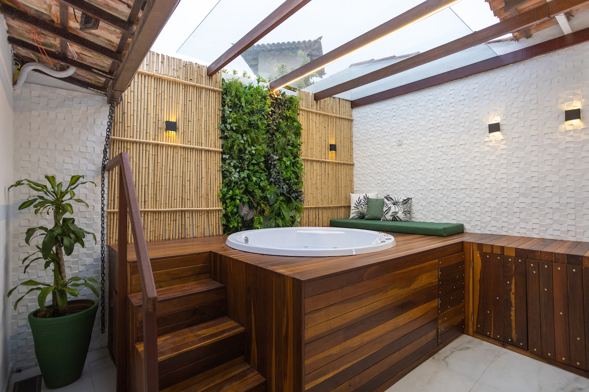 Luksusowe i prywatne spa Heritage: kilka kroków od Orla Bardot 🌊 Odkryj butikowy azyl, w którym dziedzictwo rodziny rybaków spotyka się z nowoczesnym wellness. Ta odnowiona willa, zaledwie 30 sekund od Orla Bardot, oferuje ekskluzywne spa (jacuzzi, sauna, prysznic tropikalny) dostępne od 9:00 do 21:30. Rozkoszuj się wykwintnym tarasem na świeżym powietrzu, pluszowym wypoczynkiem i prywatnym parkingiem – rzadkim luksusem w Búzios. Spacer do plaży Rua das Pedras i Azeda. 🚭 Zakaz palenia i imprez. Spokojny wypoczynek dla par i rodzin.