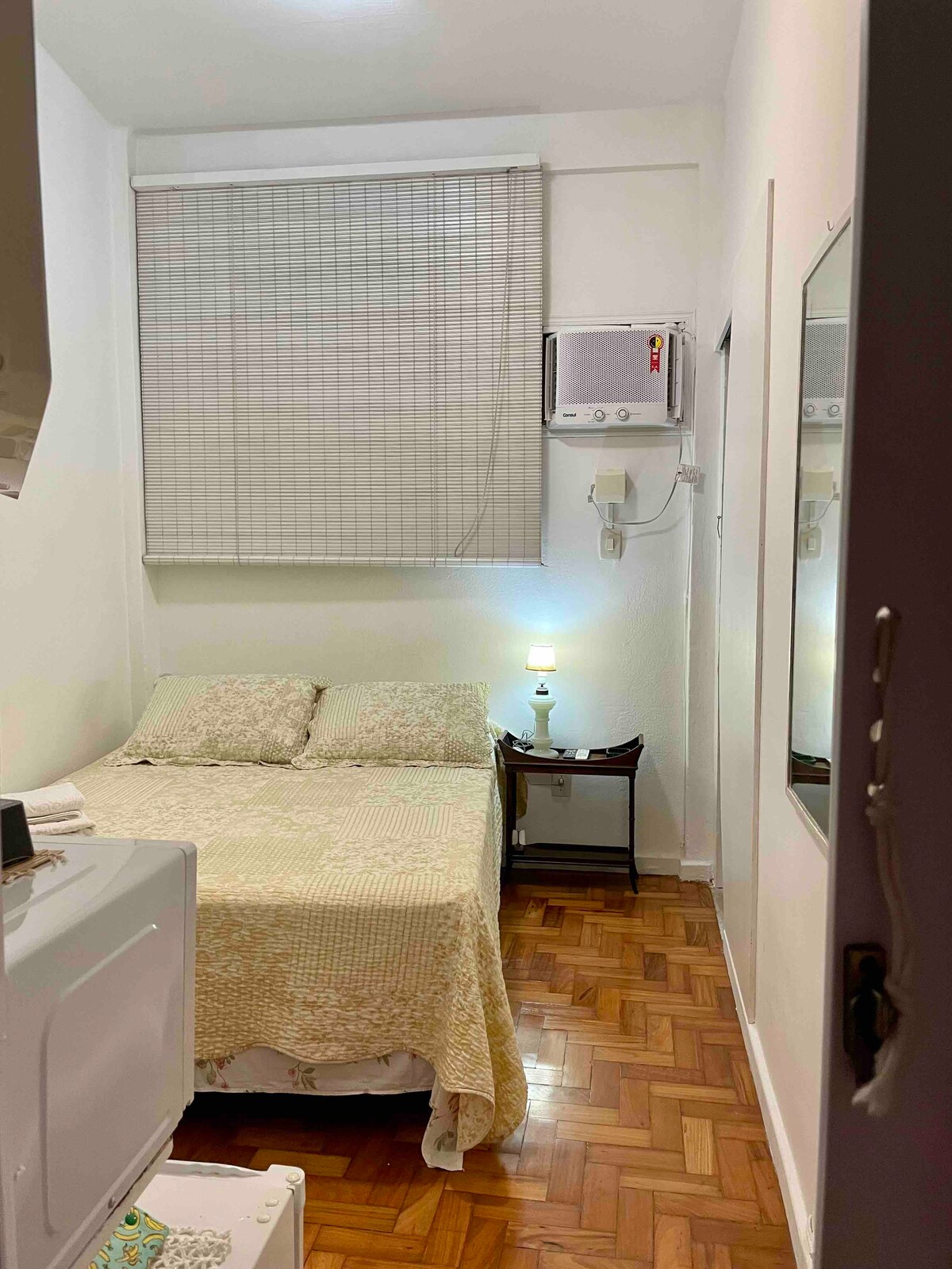 Acomodação com 5 m2, uma cama box de solteiro, wi-fi, ventilador e rouparia completa. Banheiros compartilhados (masculino e feminino), com ducha quente e ducha higiênica. Café da manhã incluído na hospedagem. Secador de cabelos, pratos, copos, talheres e ferro de passar roupas podem ser solicitados na recepção, que tem funcionamento 24 horas. PETs e crianças não são permitidos nesta acomodação.