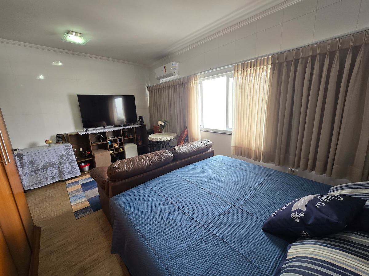 Apartament dla 1 osoby, styl loft/mieszkanie, klimatyzacja w salonie i sypialni, telewizor Smart TV w salonie, internet, lodówka z funkcją Frost Free, kuchenka mikrofalowa i wszystkie przybory. Znajduje się na 3. piętrze (bez windy), 1 miejsce parkingowe (można wynająć kolejne w budynku) i 1 miejsce na motocykl. Uprzywilejowana lokalizacja: zaledwie 200 metrów od plaży Enseada (ulica restauracji Rufinos) Wiele sklepów w pobliżu (supermarket Extra, piekarnia, apteki, sklep mięsny, warzywnia, targ itp.). Wszystkie potrzebne obiekty w zasięgu spaceru